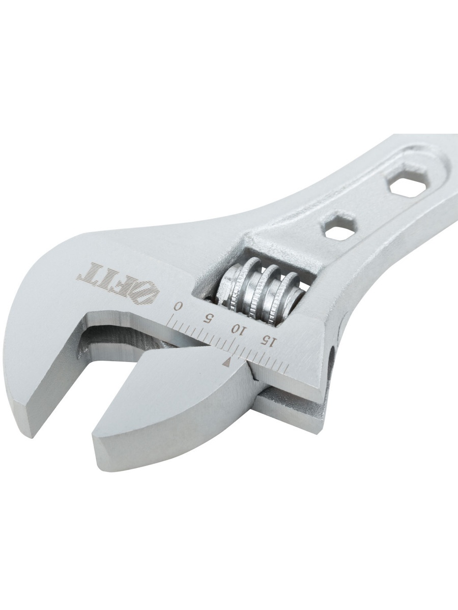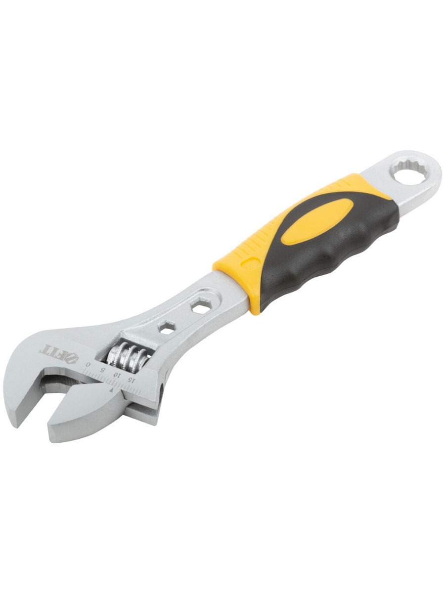 «Классик». Размерная шкала. Увеличенный рабочий диапазон губок. Накидной ключ, встроенный в ручку. Материал: штампованная инструментальная сталь с хромированным покрытием, пластиковая прорезиненная ручка. Упаковка: пластиковый подвес.