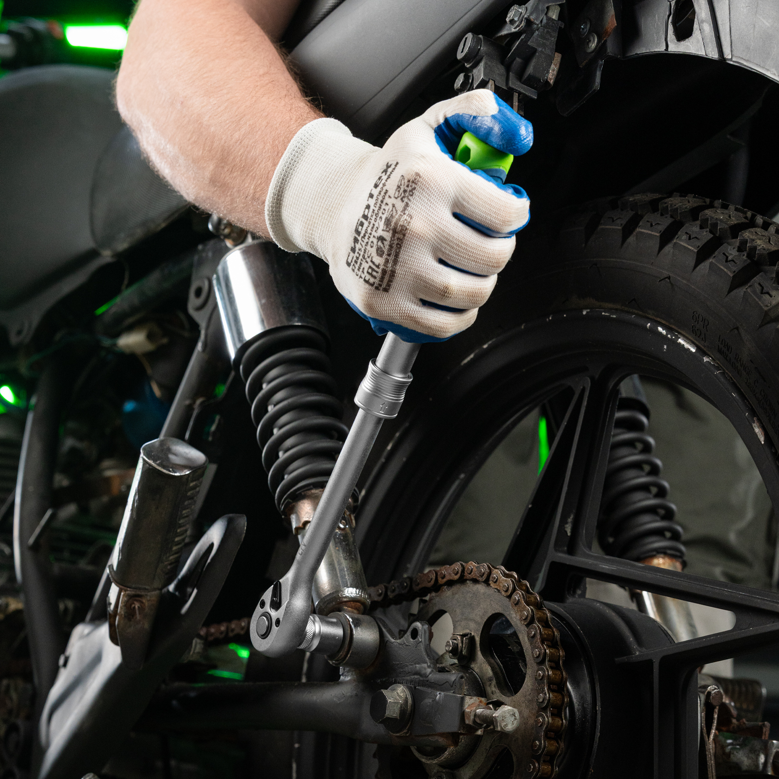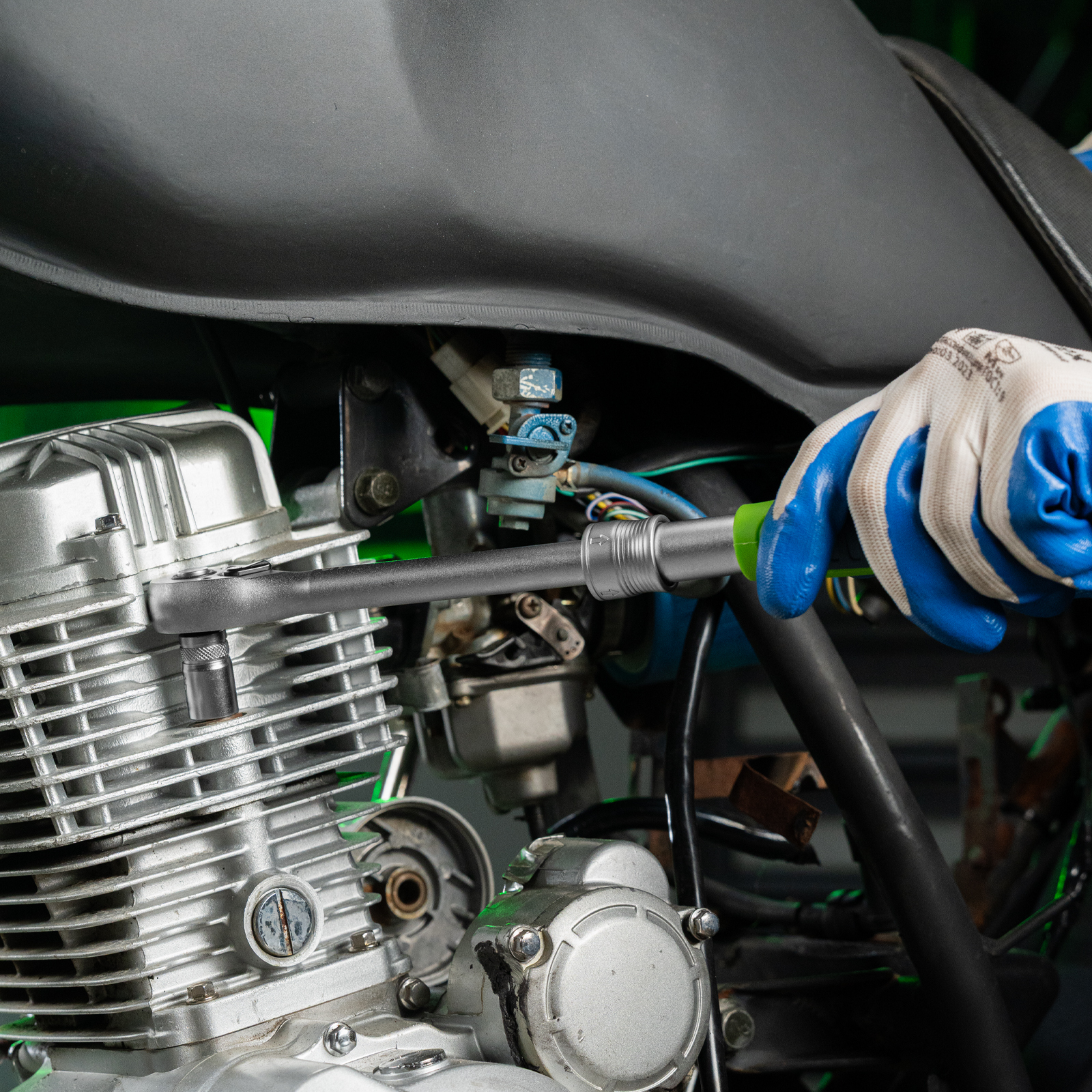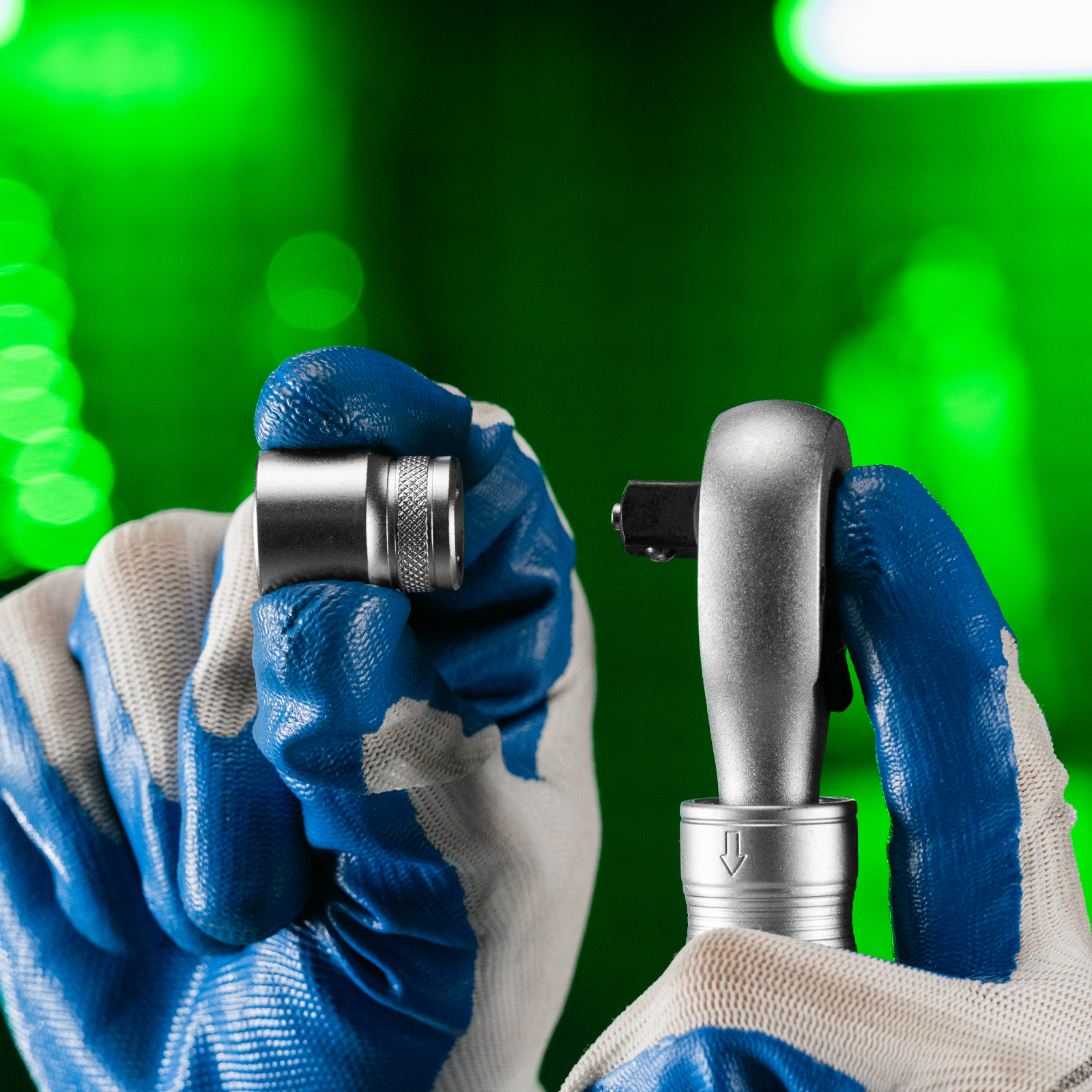 - Надежная фиксация насадок — шариковый замок крепко удерживает торцевую головку.