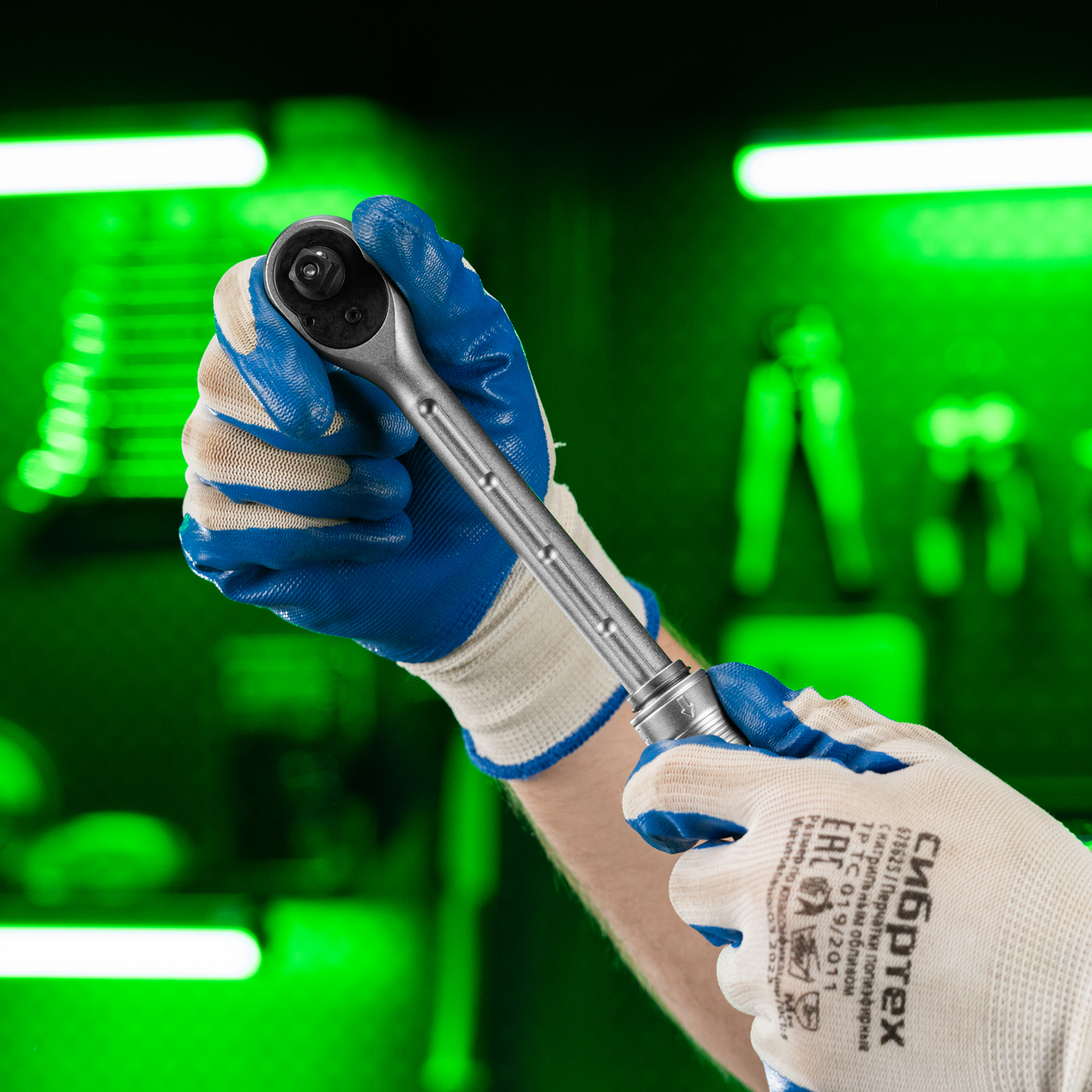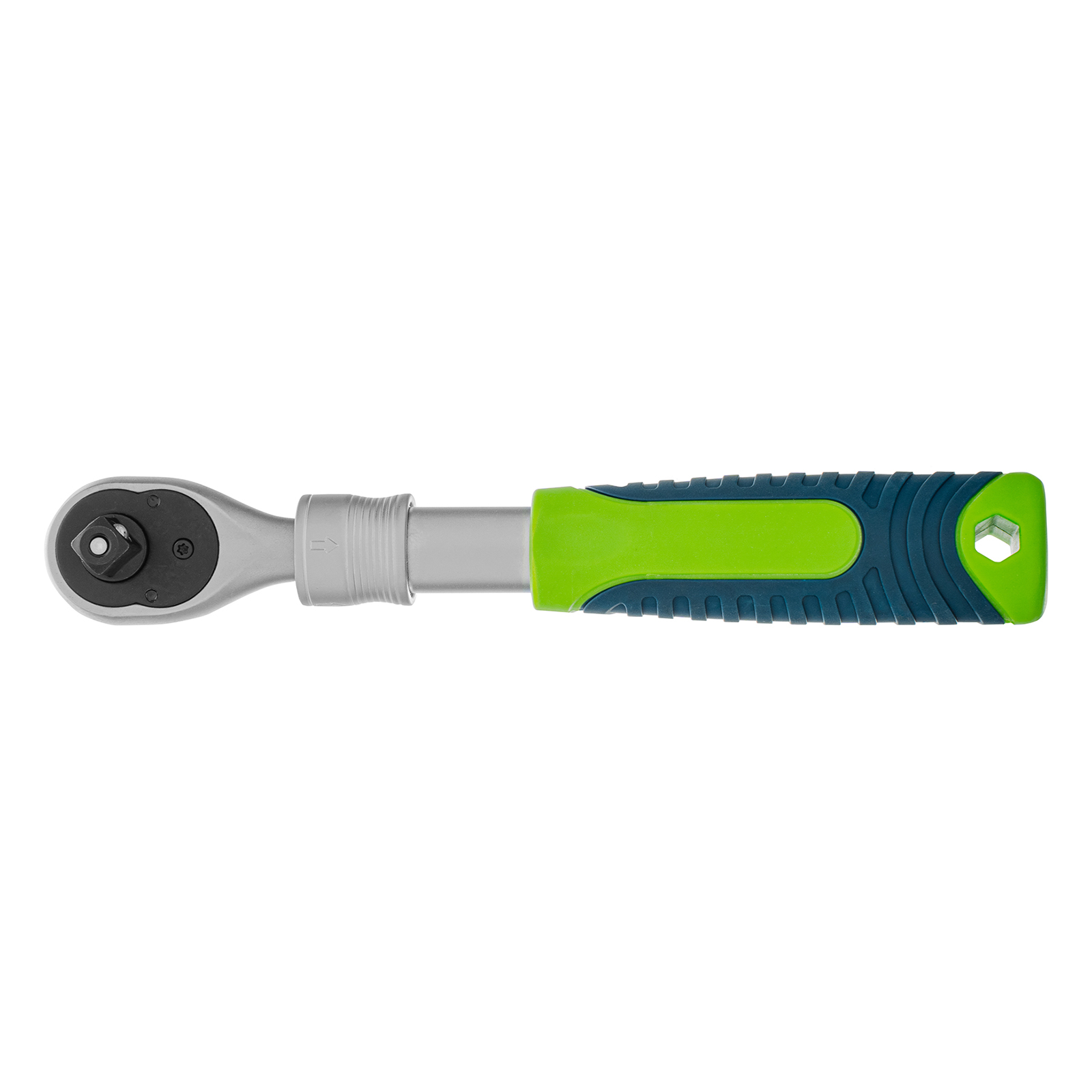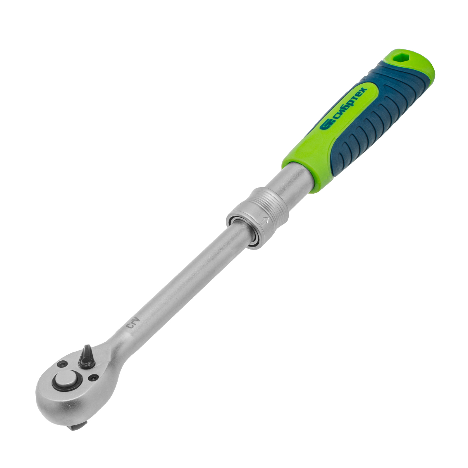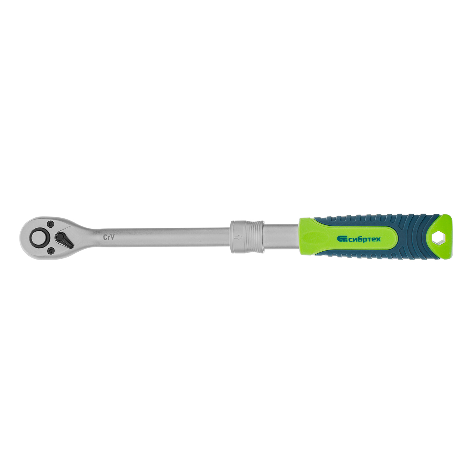Ключ-трещотка 3/8″ Сибртех 14076 с телескопической рукояткой длиной 215-315 мм, храповым механизмом с 72 зубьями и функцией быстрого сброса, — инструмент для работы с резьбовым крепежом. Используется совместно с торцевыми головками, удлинителями, адаптерами. Телескопическая рукоятка упрощает работу с труднодоступным крепежом, а также позволяет увеличить прикладываемое усилие. Трещоточный механизм с 72 зубьями облегчает работу, угол поворота составляет 5°, что удобно в условиях ограниченного пространства. Инструмент пригодится в мастерской и гараже.