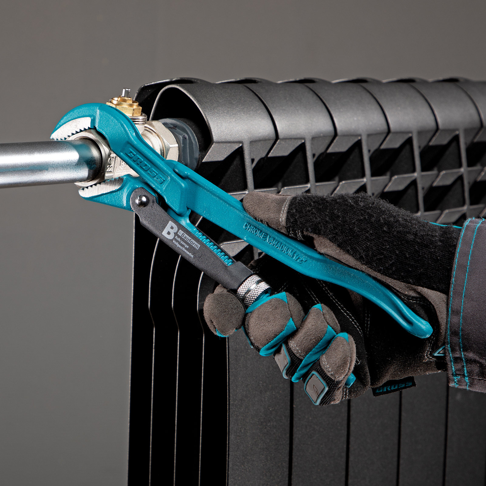 - Высокая прочность — цельнокованый корпус изготовлен из хромованадиевой стали, а губки закалены до твердости 57-60 HRC.