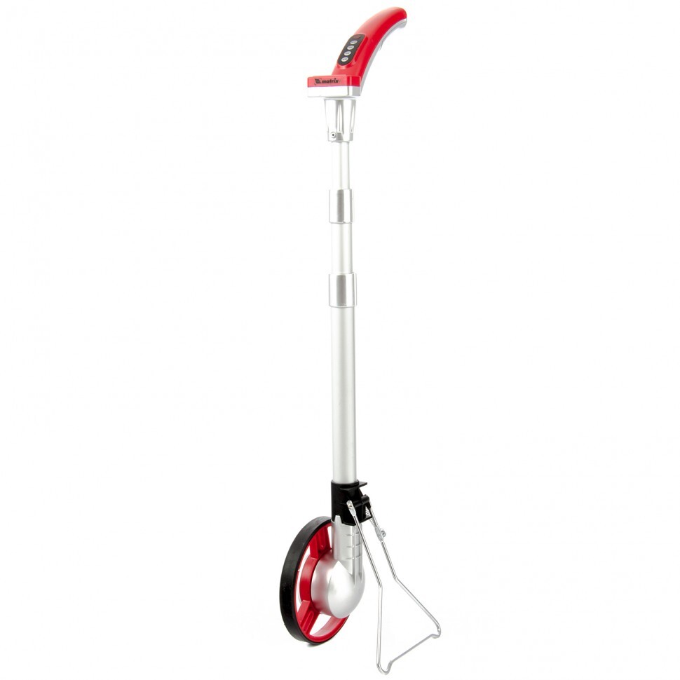 Колесо измерительное электронное Matrix 36002 используется для замера расстояний на местности и особенно удобно на участках со сложным рельефом, где невозможно использование рулетки или дальномера. Трехсекционная телескопическая ручка раздвигается с 560 до 1100 мм, что позволяет подобрать длину под любой рост оператора. Показания удобно считывать — они выводятся на ЖК-дисплей, установленный на рукоятке. Мерное колесо, или курвиметр, применяют при инвентаризации сельскохозяйственных земель, строительстве автомобильных и железнодорожных работ, для обмера строений или дачных участков.