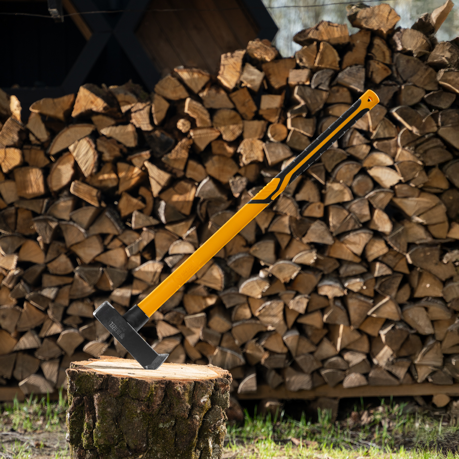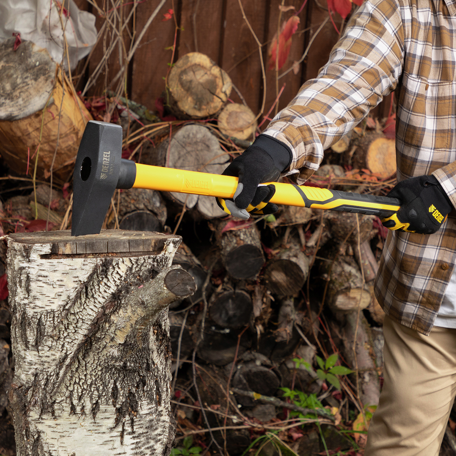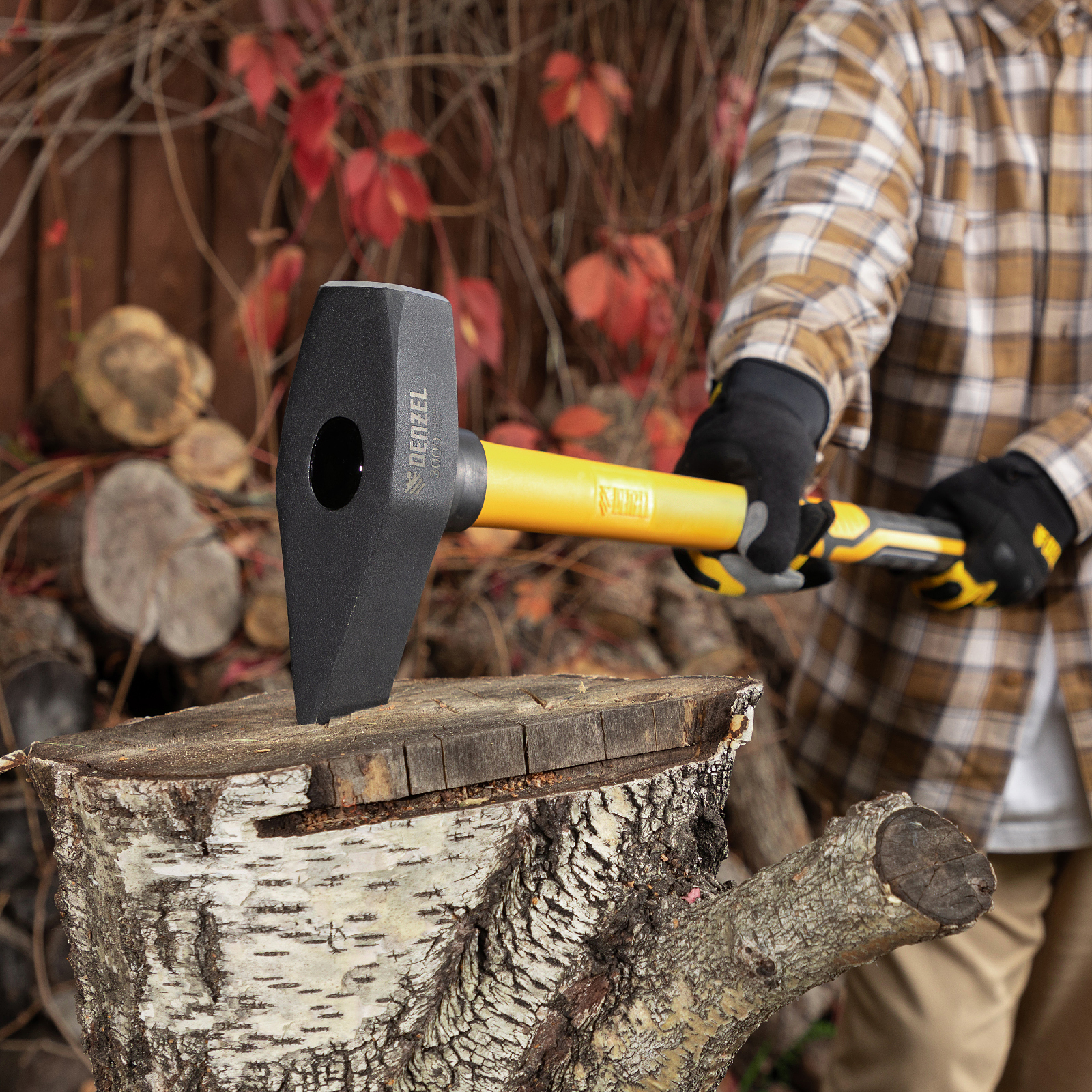 Кованый колун-кувалда Denzel 21851 весом 3000 г, с фибергласовой обрезиненной рукояткой длиной 880 мм, с TPR-покрытием, предназначен для колки древесины и проведения демонтажных работ: разрушения кирпичной кладки, камня, бетона, и других тяжелых ударных работ. Инструмент оптимален для профессионального применения.