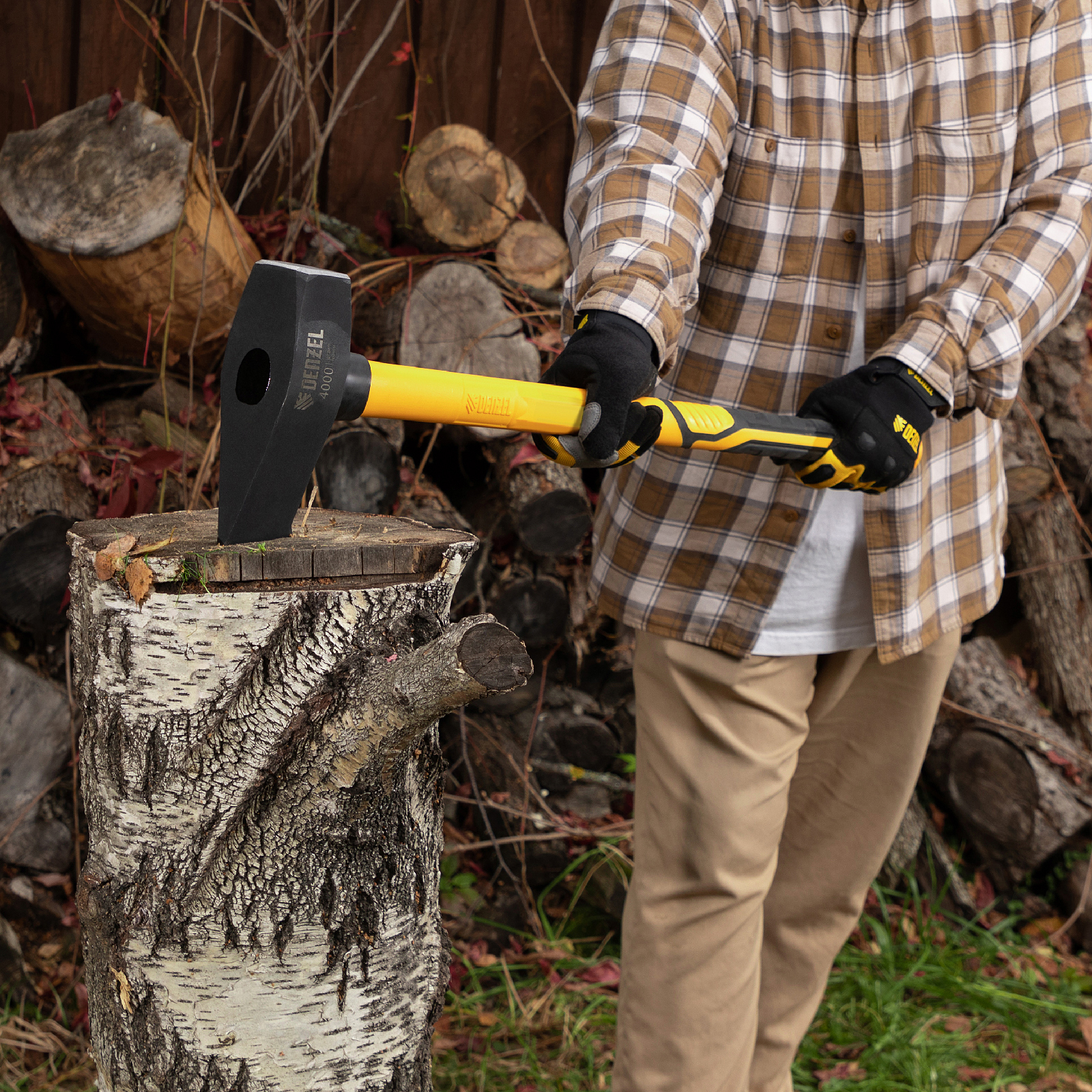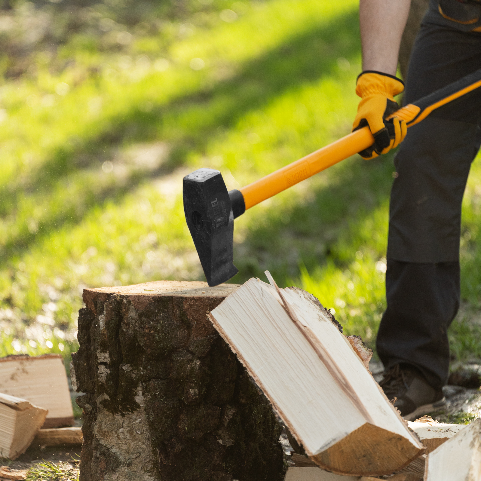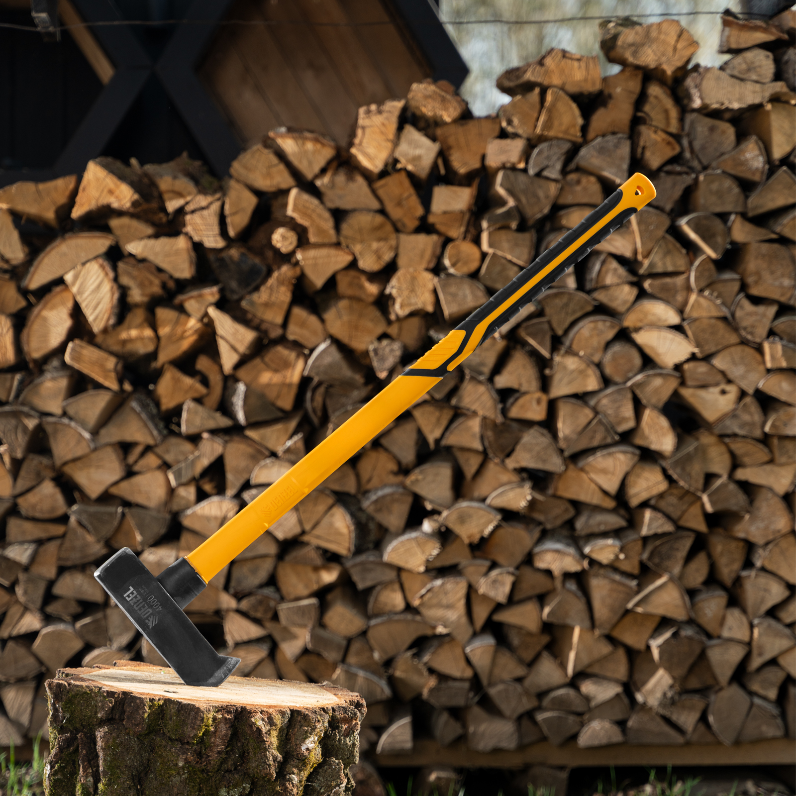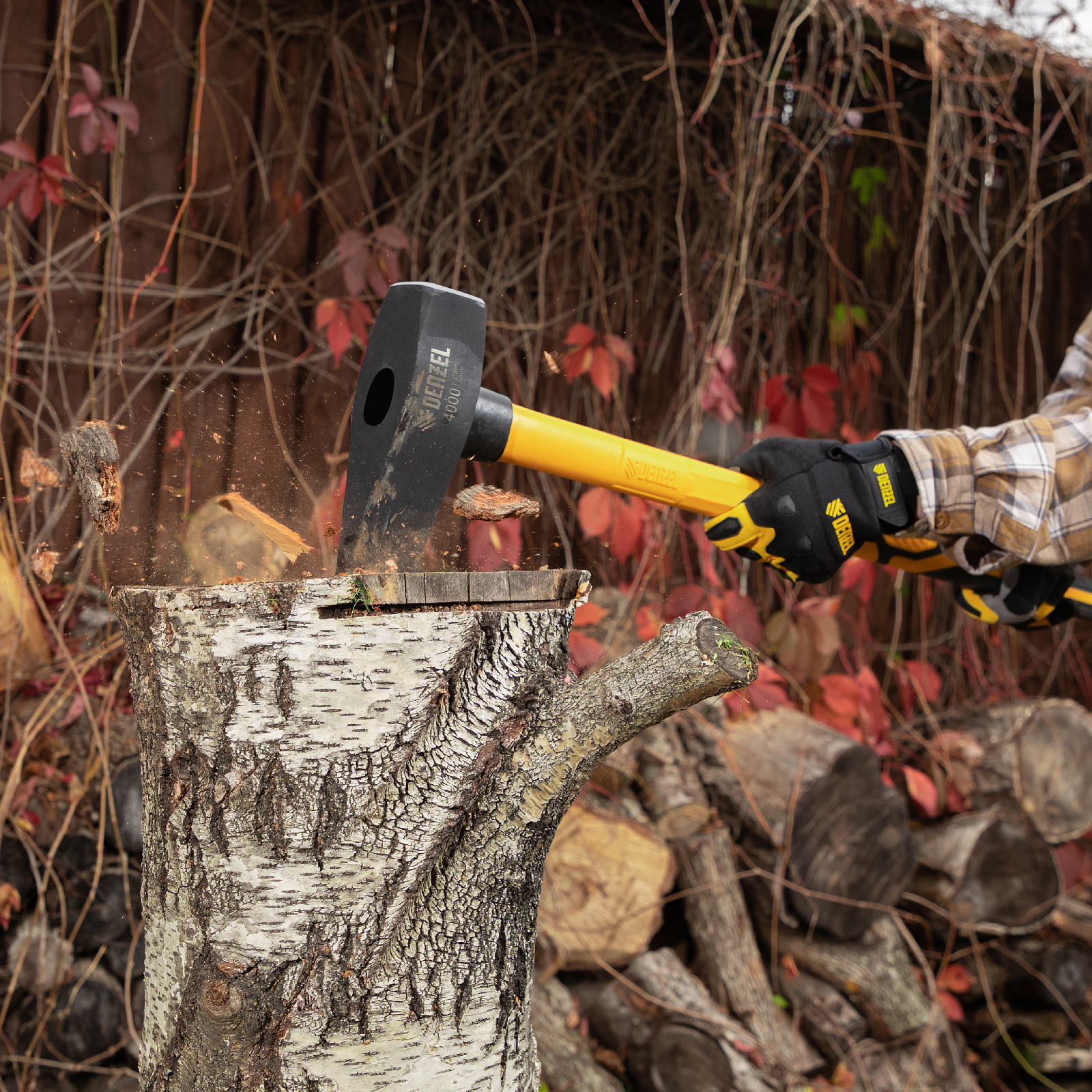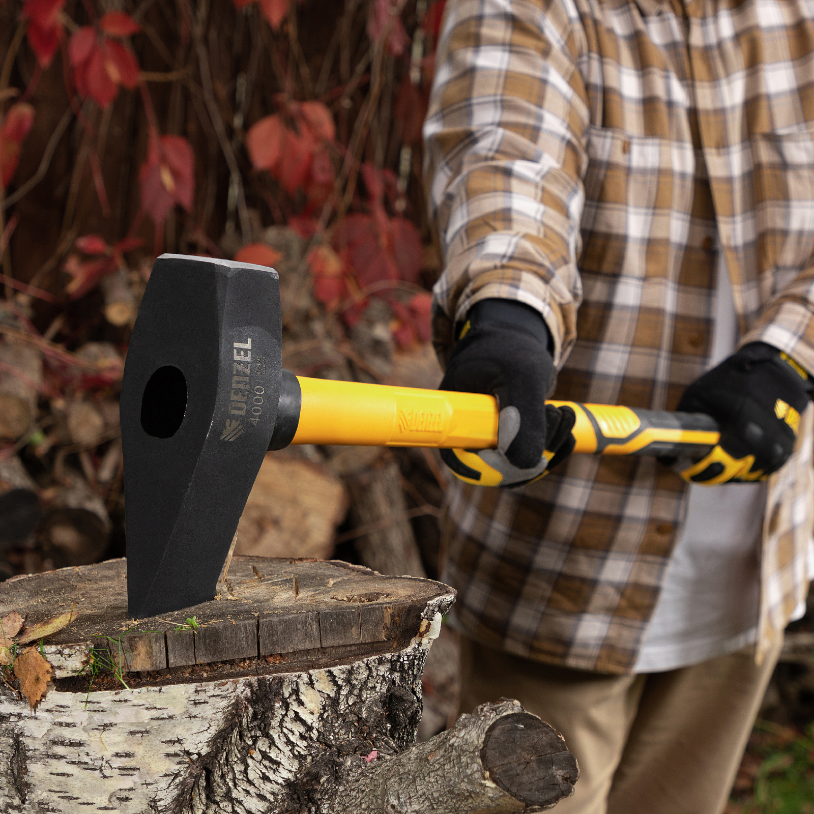 Кованый колун-кувалда Denzel 21852 весом 4000 г, с фибергласовой обрезиненной рукояткой длиной 880 мм, с TPR-покрытием, предназначен для колки древесины и проведения демонтажных работ: разрушения кирпичной кладки, камня, бетона, и других тяжелых ударных работ. Инструмент оптимален для профессионального применения.