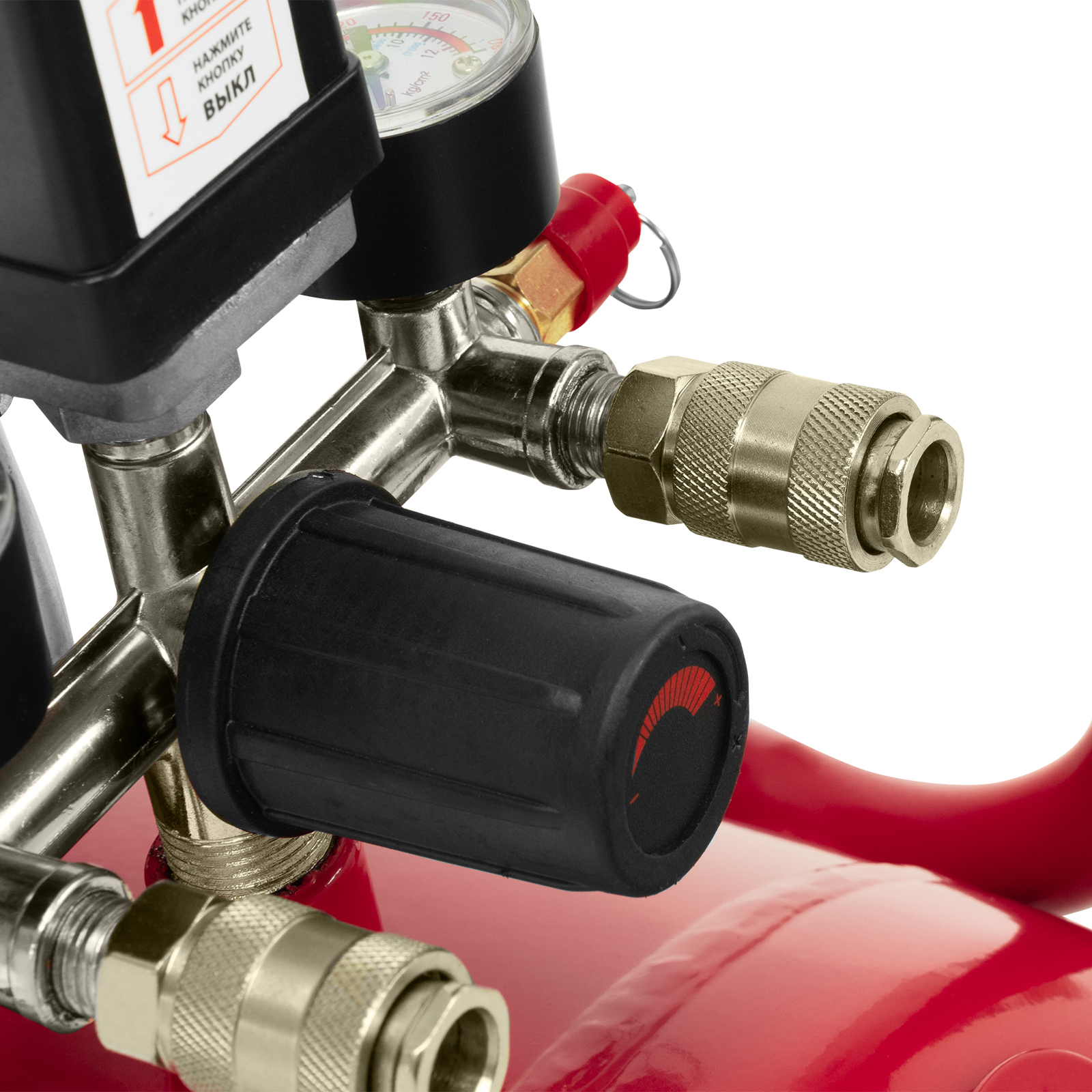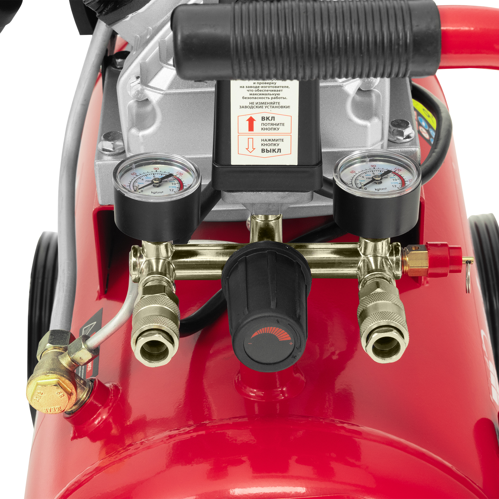 - Удобный контроль рабочих параметров — 2 манометра и регулятор позволяют отслеживать и корректировать давление для корректной работы пневмоинструмента.