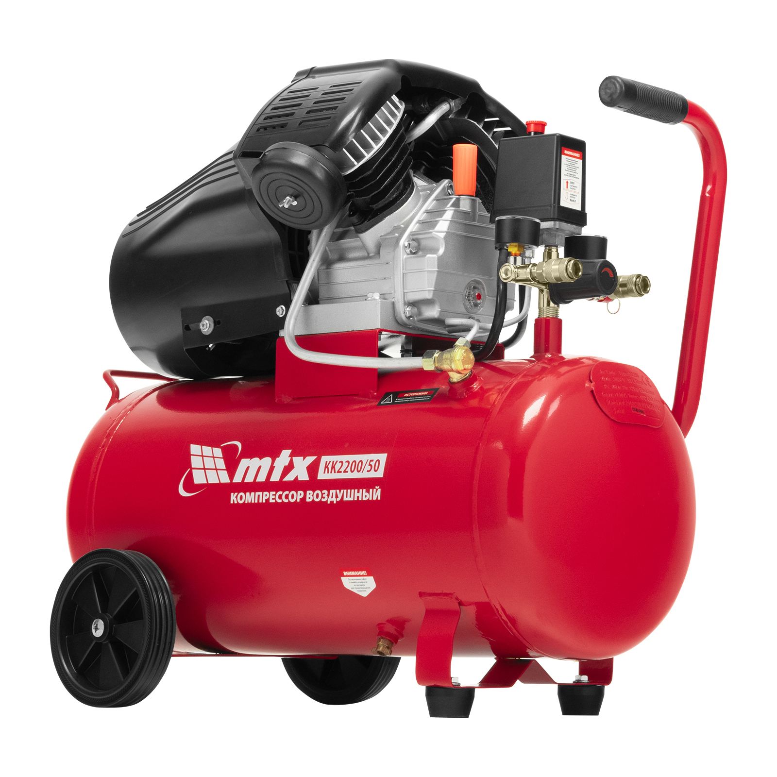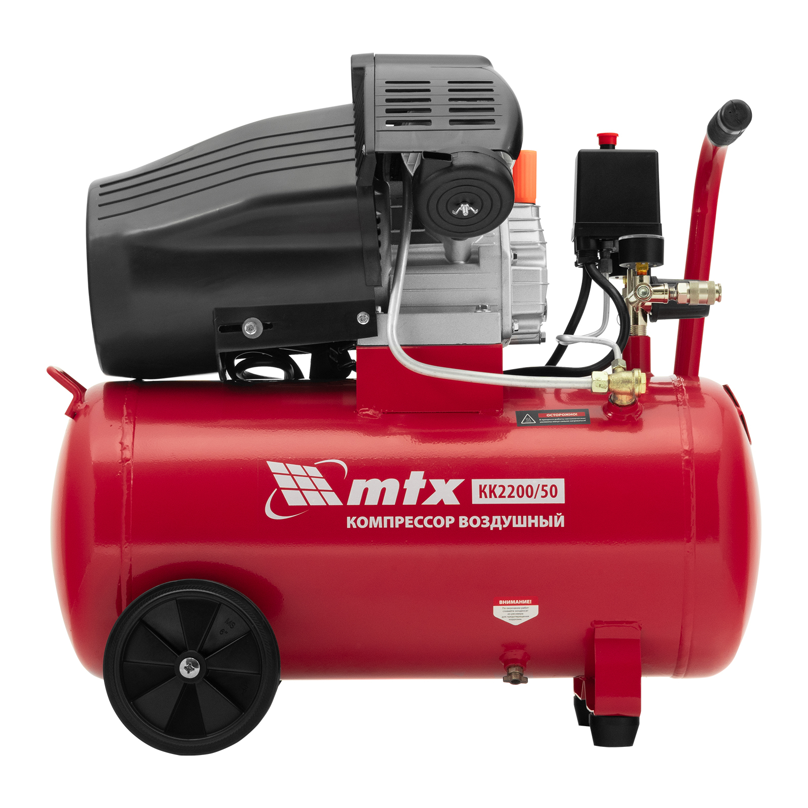 Компрессор воздушный масляный MTX KK-2200/50 58024 мощностью 2,2 кВт, с прямым приводом, оснащен ресивером объемом 50 л, обеспечивает производительность на уровне 350 л/мин и рассчитан на давление до 8 бар. Предназначен для обеспечения работоспособности пневматического инструмента: гайковерта, шлифовальной машины, шуруповерта, краскораспылителя или т.д. Мощный и производительный компрессор будет полезен на строительной площадке, в гараже, на предприятии автосервиса.