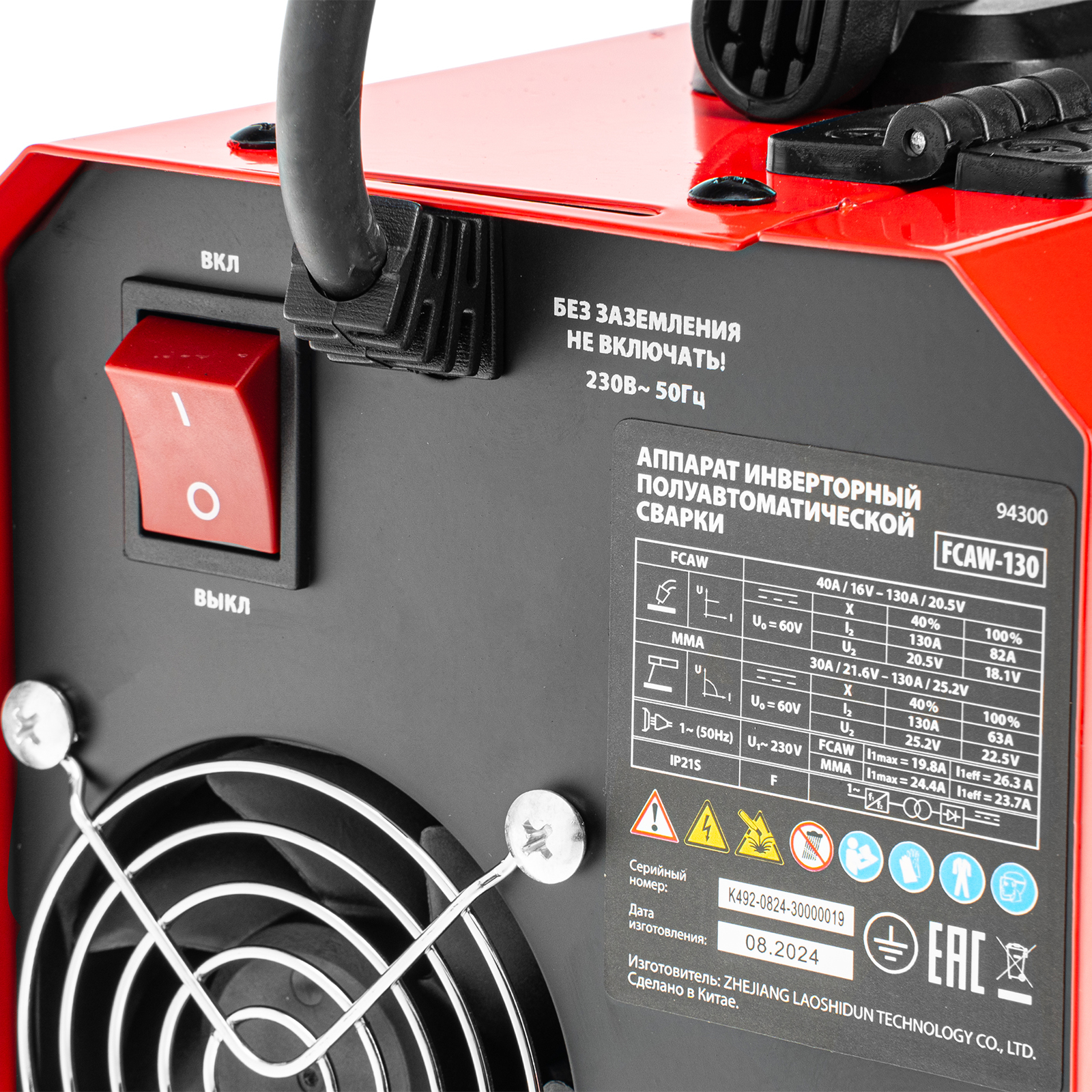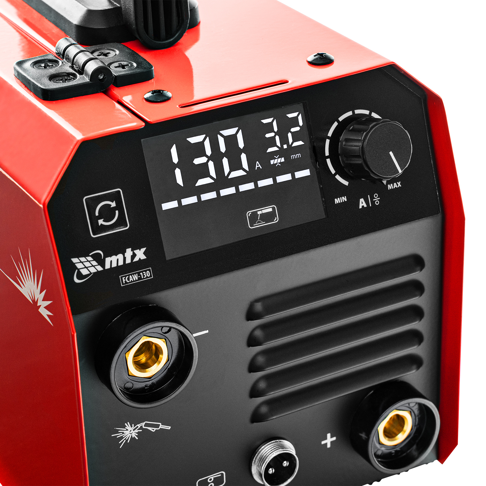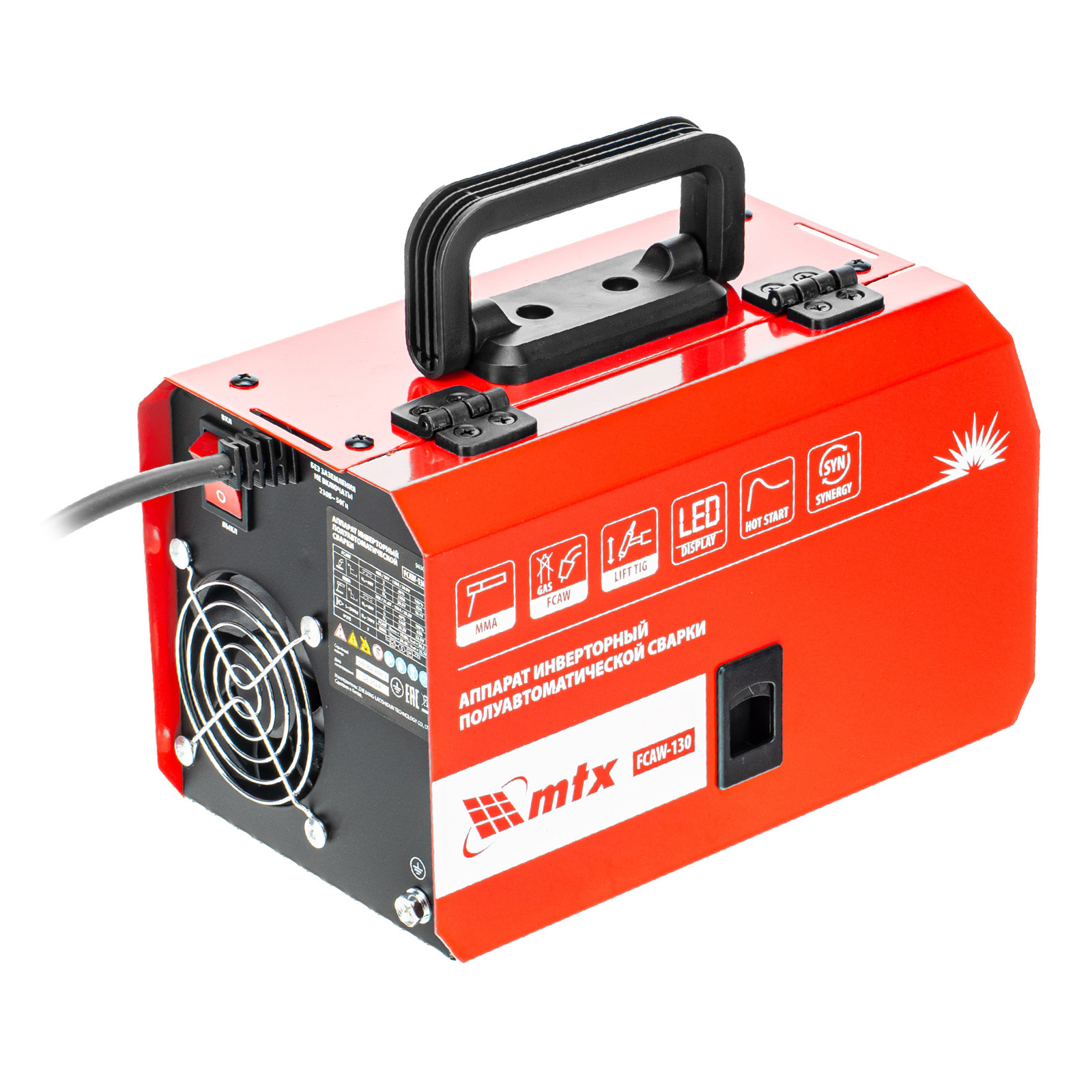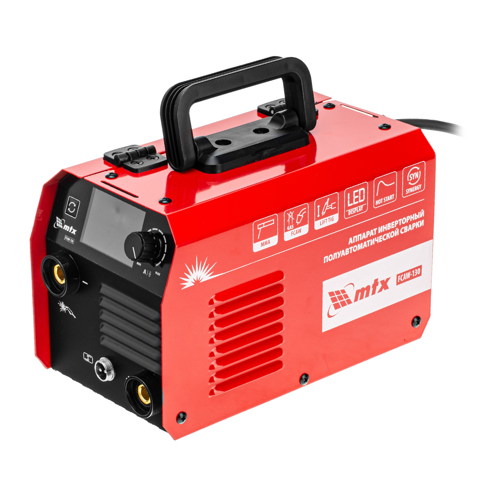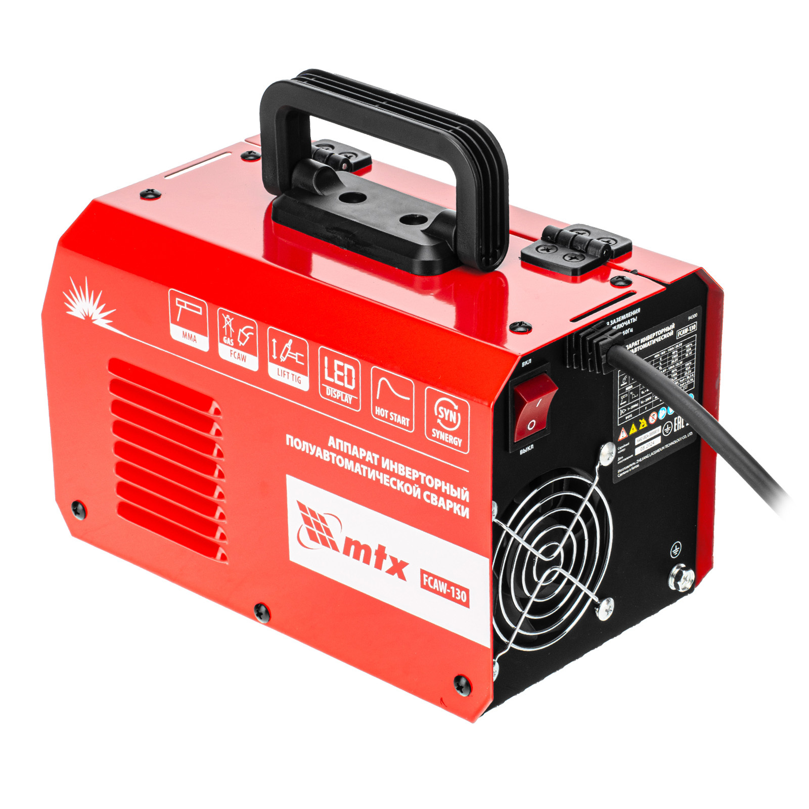 Инверторный аппарат полуавтоматической сварки MTX FCAW-130 94300 работает с постоянным сварочным током до 130 A, продолжительность включения составляет 60%. Доступна сварка покрытым электродом (MMA), порошковой (или флюсовой) проволокой диаметром 0,8 / 1 мм (FCAW), а также аргонодуговая сварка неплавящимся электродом Lift TIG (горелка не входит в комплект поставки). Аппарат подходит для сварки конструкционных и нержавеющих сталей, а также цветных металлов.