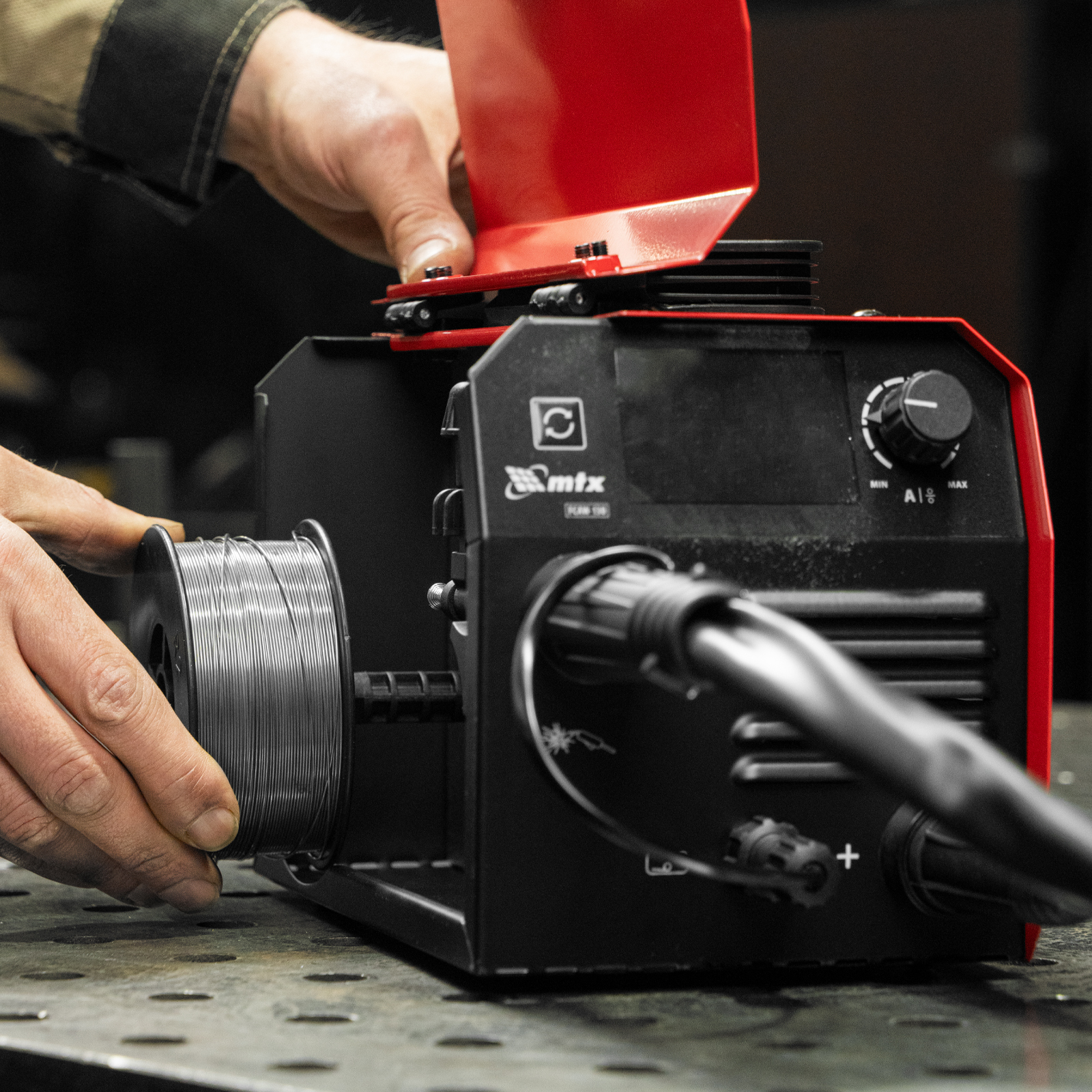 - Удобное использование — скорость подачи проволоки автоматически корректируется в зависимости от выбранного диаметра проволоки и заданного сварочного тока.