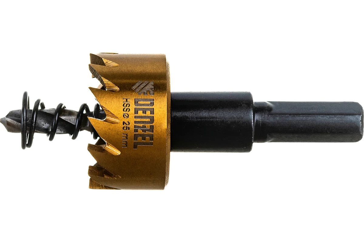 Коронка Denzel HSS 724104 с нитридтитановым покрытием, 25 мм, применяется для сверления отверстий в черных, цветных металлах, пластике и других материалах. Рассчитана на профессиональное использование на строительных площадках. Коронка пригодится при прокладке коммуникаций, монтаже оборудования, крепежных элементов и различных конструкций.