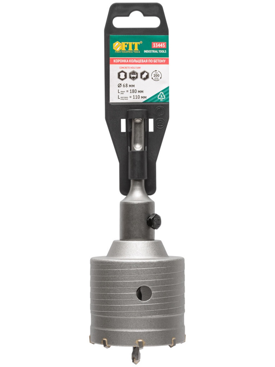 - Коронка по бетону для ударного сверления перфоратором отверстий в бетонных, кирпичных и каменных стенах. Резцы коронки с алмазной заточкой изготовлены из композитного карбид-вольфрамового сплава ВК6, выдерживающего высокие ударные нагрузки. Центрирующее сверло для точного позиционирования и предотвращения смещения. Спиральная форма коронки способствует снижению трения и улучшает отвод пыли. Резьбовая посадка хвостовика М22. Коронки совместимы с удлинителями FIT IT арт. 33451–33458 и 33459–33460.