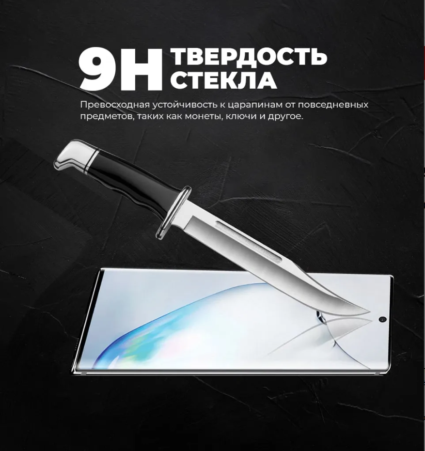 Защитное стекло на изогнутый экран — тверже только алмаз, исключены царапины, защита надолго сохранит красивый внешний вид.