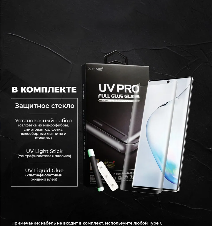 Косметическое защитное стекло X-ONE UV PRO, толщиной всего 0.2 мм., специально для изогнутых Edge-экранов.