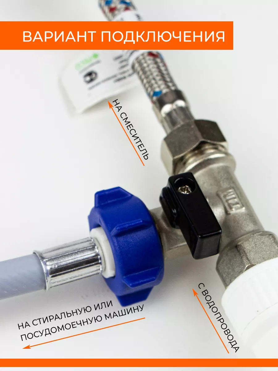 Кран шаровой трехходовой для бытовых приборов, 1/2"х 3/4"х 1/2" резьба ННВ. Изготовлен из высококачественной горячепрессованной латуни с никелированным покрытием, не боится механических повреждений. Антикоррозионный свойства материалов обеспечивают долговечную работу устройства. Кран шаровой оснащен черной ручкой флажного типа. Кран проходной для стиральной машины используется так же для подключения посудомоечных машин и других бытовых приборов с резьбовым соединением 3/4" к системе водоснабжения. Диаметр подключения к водопроводной сети 1/2″, наружная резьба. Диаметр подключения гибкого шланга 3/4", наружная резьба. Применяется для холодной и горячей воды. Рабочий температурный диапазон: от 0 до + 120 градусов Цельсия.