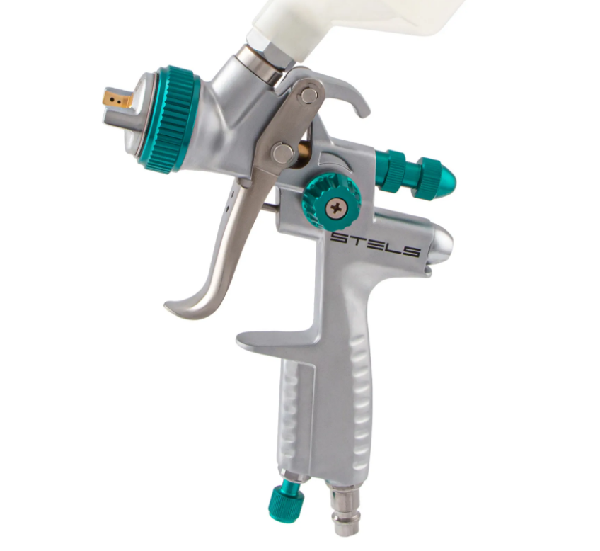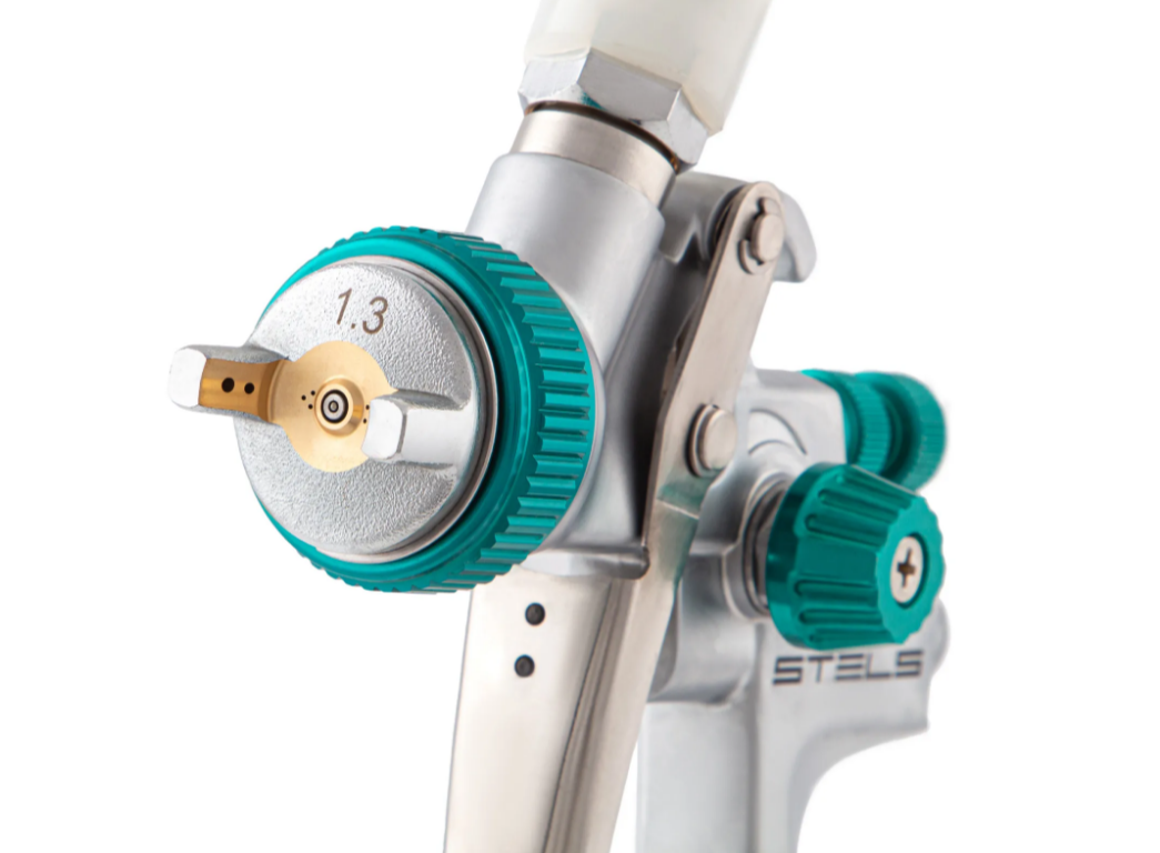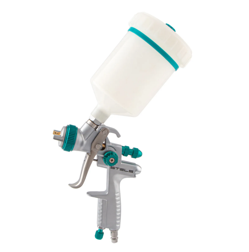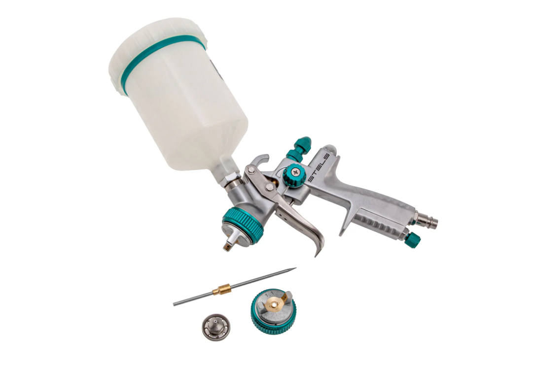 Краскораспылитель гравитационного типа Stels AG 901 LVMP 57365 с соплами диаметром 1,3 и 1,1 мм предназначен для профессионального окрашивания, нанесения эмали и лака на поверхности, грунтовки стен, побелки потолков, опрыскивания растений и т.д. Формирует мягкий широкий факел под давлением 2,5 бар и распыляет материалы равномерно, без образования подтеков.