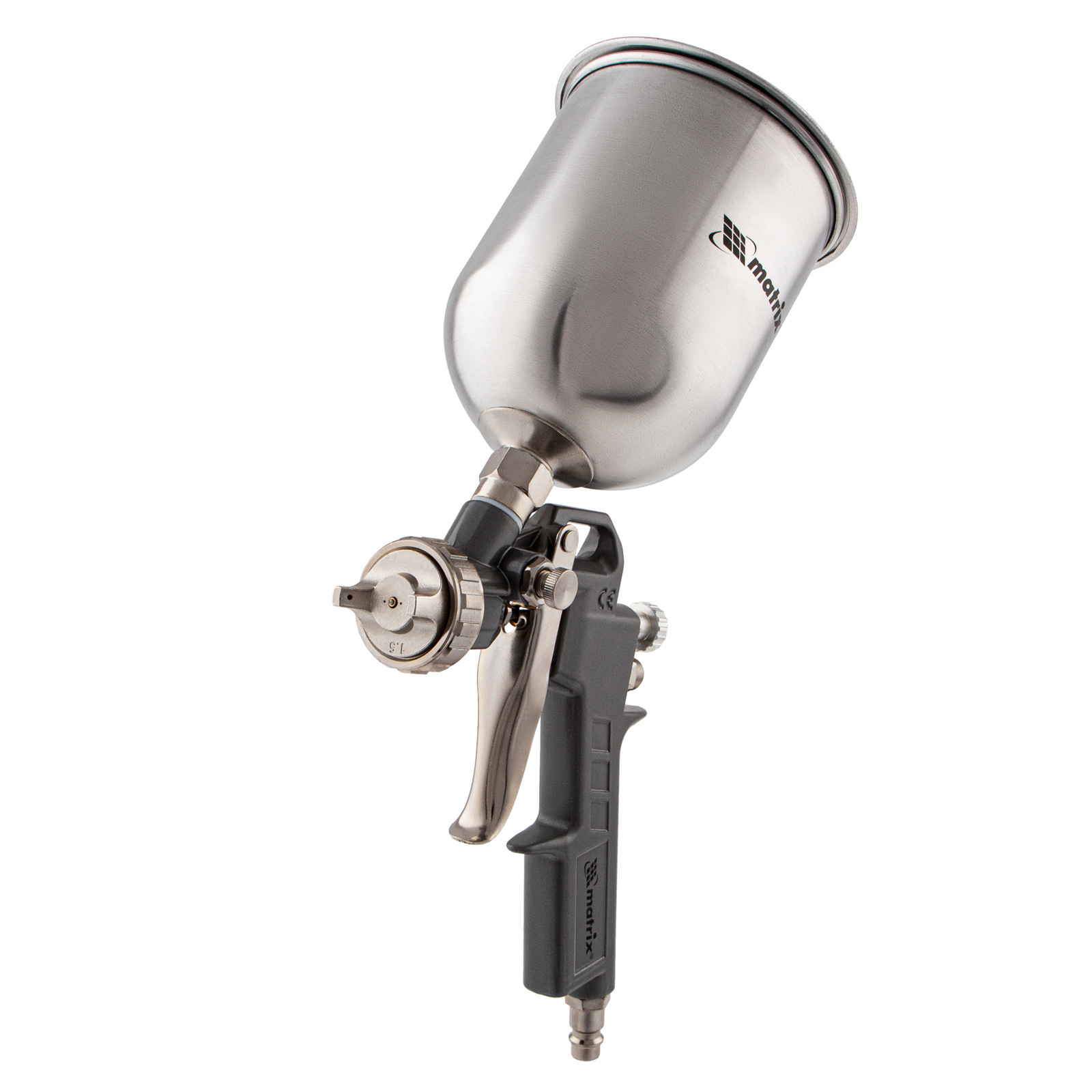Пневматический краскораспылитель Matrix 57314 с верхним бачком объемом 0,6 л и соплами диаметром 1,2, 1,5 и 1,8 мм используется для окрашивания поверхностей и нанесения защитных составов. Он может работать с различными составами, такими как шпаклевка, лак и краска, т. к. в комплекте идет набор сменных сопел различного диаметра. Краскораспылитель пригодится в автосервисе или на стройке, а также на мебельном производстве для обработки дерева лаком.
