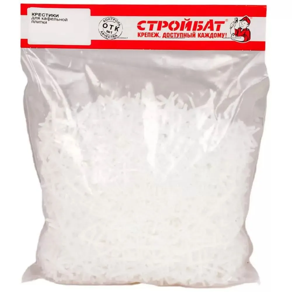 Крестик Стройбат 11520 используются при укладке плитки для создания одинакового расстояния между плитками. Изготовлены из пластмассы.