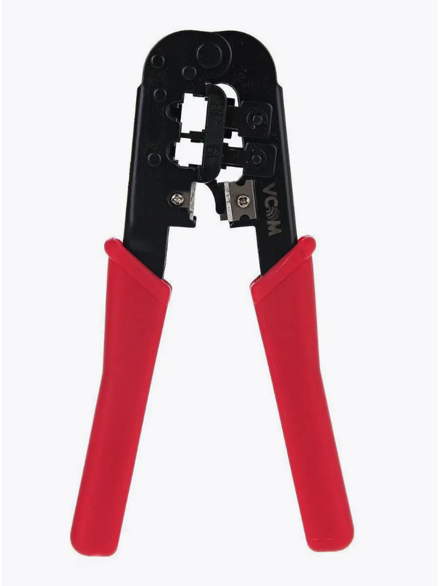 Кримпер VCOM RJ-45 (8P8C) RJ-12 (6P6C) клещи обжимные аналог HT-568 универсальные Кримпер предназначен для установки - обжима разъемов RJ-45 (8P8C), RJ-12 ( 6P2C), а также для снятия изоляции, как плоских, так и круглых кабелей и обрезки проводов. Клещи обжимные изготовлены из высокопрочной закаленной стали с воронкой. Крипмер оснащен округлыми линиями тела для безопасного нанесения и оптимального обхвата поверхности без сколов и деформации. Механизм храповика предотвращает обратное движение рук во время цикла обрезки, а возвратная пружина обеспечивает обратный ход рук. Этот Кримпер оснащен функцией быстрого разблокирования лезвий после обрезки. Синтетическое покрытие ручек - обжимные клещи не выскальзывают из рук во время рабочего процесса. Обратите внимание: простая и надёжная конструкция эргономичный захват с ними, как говорится, работа в радость! минимум отвлечения - яркий цвет ручек всегда будет в поле зрения Клещи обжимные - ваш надёжный помощник на долгие годы при прокладке кабельных сетевых коммуникаций!
