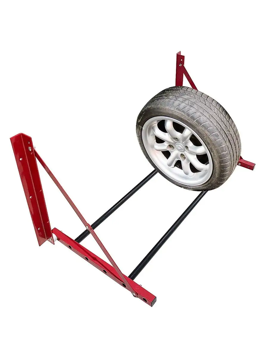 Кронштейн предназначен для удобного хранения зимних и летних автомобильных колес. Легко вмещает четыре стандартных колеса от R12 до R22. Предусмотрена регулировка по ширине от 81 до 122 см.