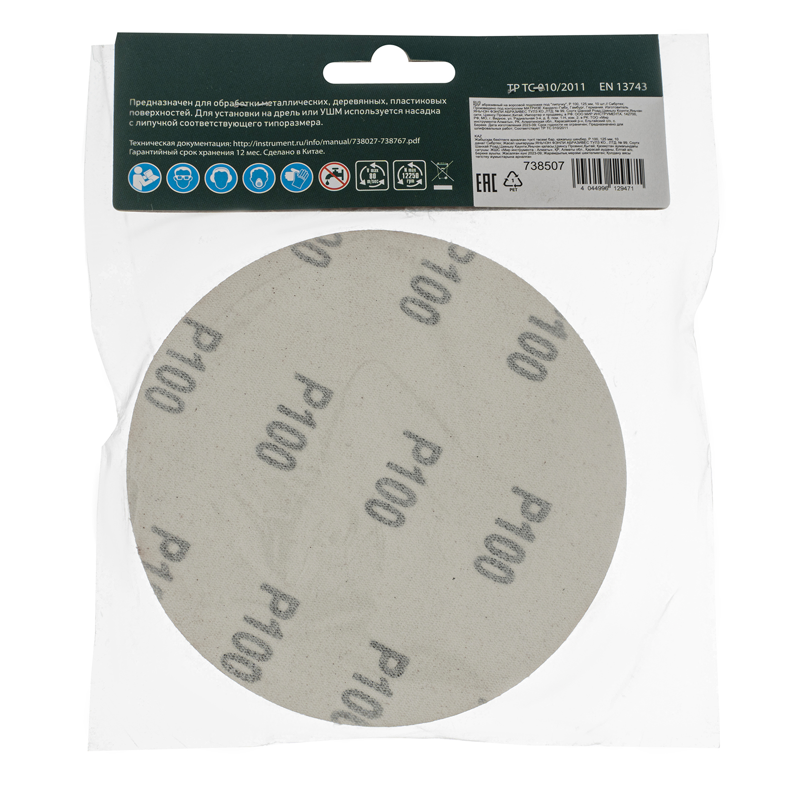 Абразивный круг на ворсовой подложке под «липучку» Сибртех 738507 с зернистостью Р 100, диаметром 125 мм, используется для промежуточного шлифования металла, древесины, пластика и других поверхностей. Круг устанавливается на эксцентриковую (орбитальную) шлифовальную машинку или на дрель с помощью опорной насадки Сибртех соответствующего диаметра.