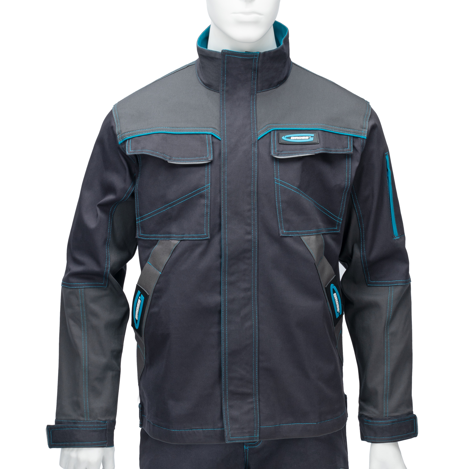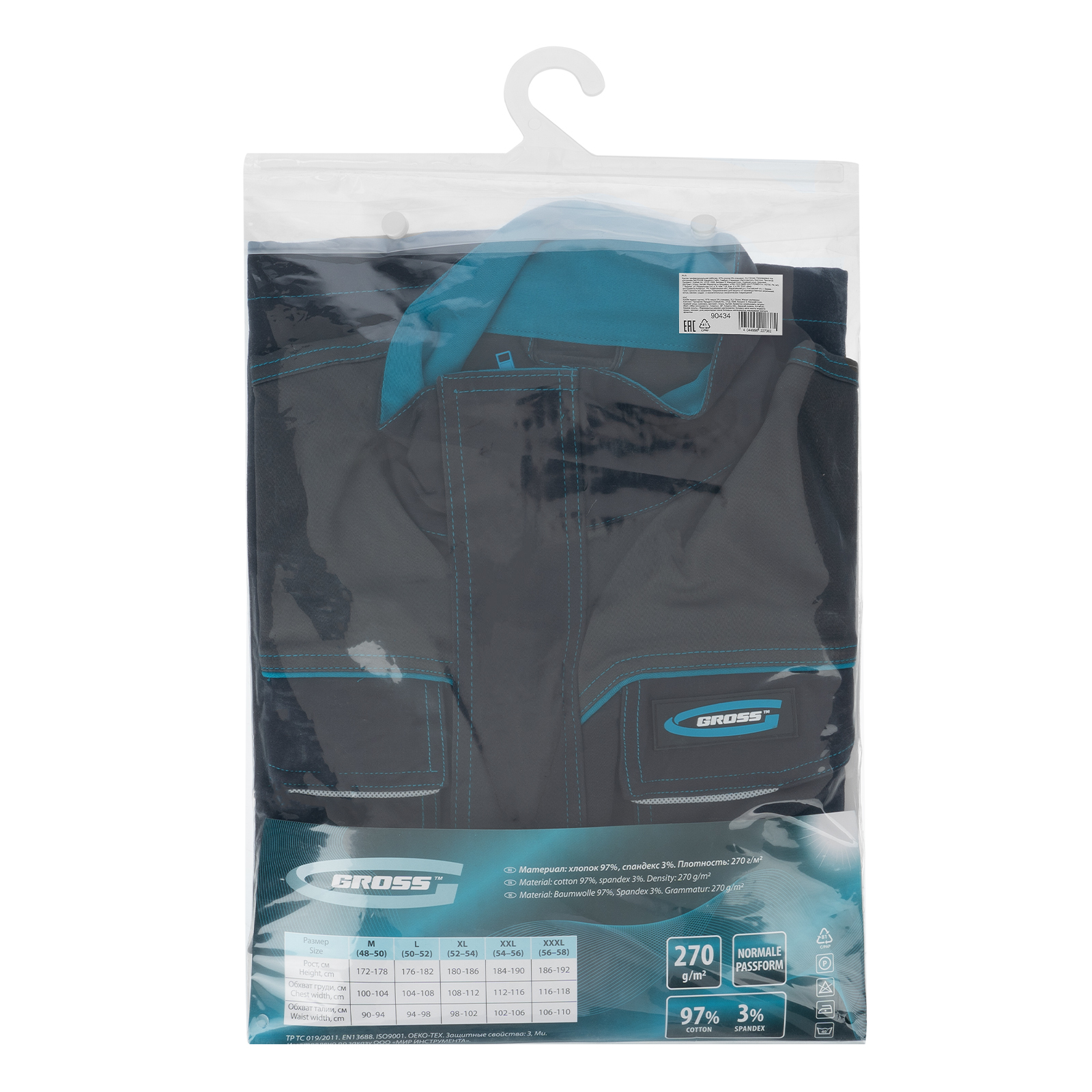 Профессиональная рабочая куртка Gross 90434 размера XL защищает пользователя от общих производственных загрязнений, нетоксичной пыли, ветра и незначительных механических воздействий. Рассчитана на рост 180-186 см и предназначена для использования в теплое время года или в отапливаемом помещении. Куртка изготовлена из ткани с 97-процентным содержанием хлопка и 3-процентным содержанием спандекса. За счет наличия хлопковых волокон в составе ткань прекрасно пропускает воздух и приятна на теле, а спандекс делает ее более эластичной, поэтому в куртке удобно работать. Одежда выполнена в практичном темно-сером цвете.