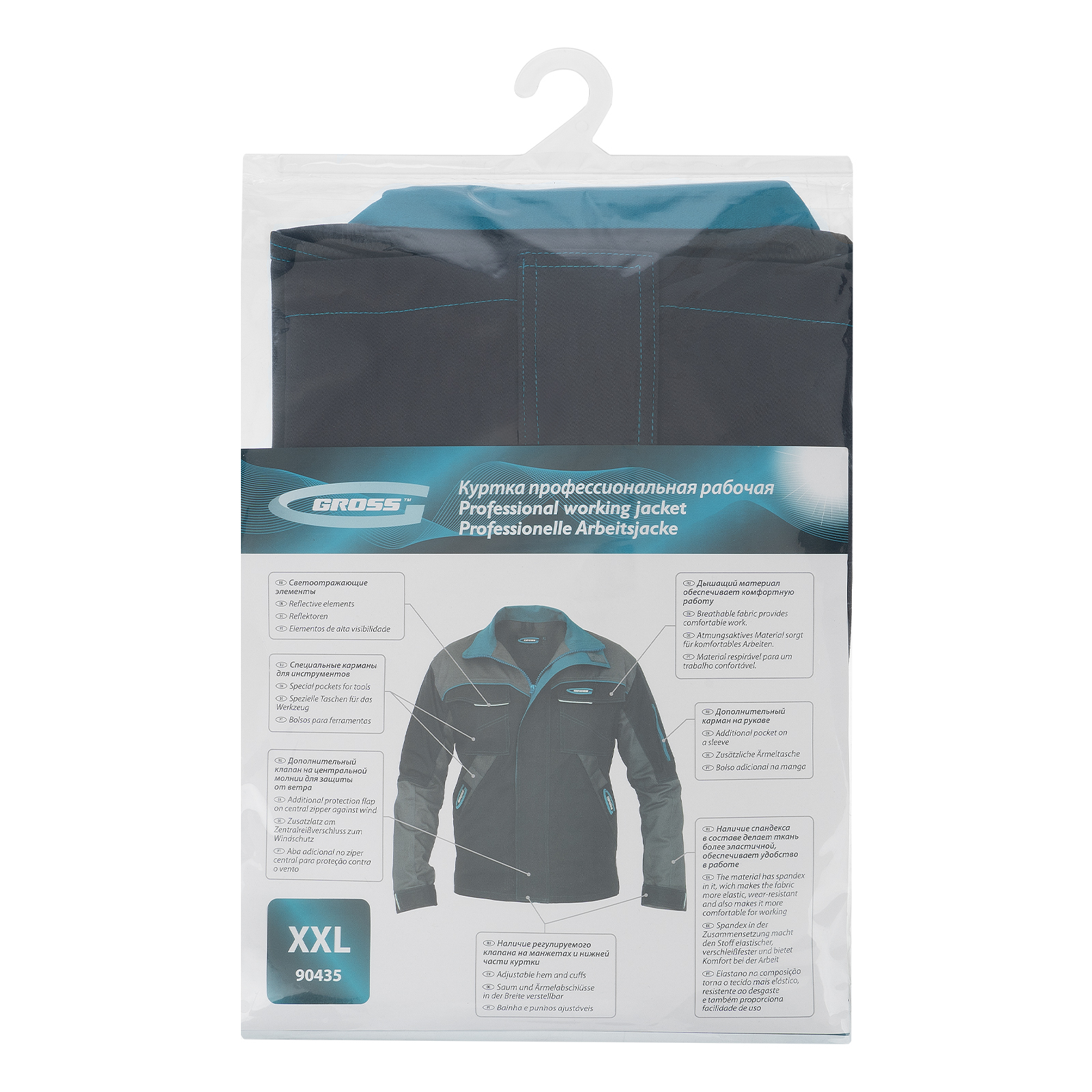 Профессиональная рабочая куртка Gross 90435 размера XXL защищает пользователя от общих производственных загрязнений, нетоксичной пыли, ветра и незначительных механических воздействий. Рассчитана на рост 184-190 см и предназначена для использования в теплое время года или в отапливаемом помещении. Куртка изготовлена из ткани с 97-процентным содержанием хлопка и 3-процентным содержанием спандекса. За счет наличия хлопковых волокон в составе ткань прекрасно пропускает воздух и приятна на теле, а спандекс делает ее более эластичной, поэтому в куртке удобно работать. Одежда выполнена в практичном темно-сером цвете.