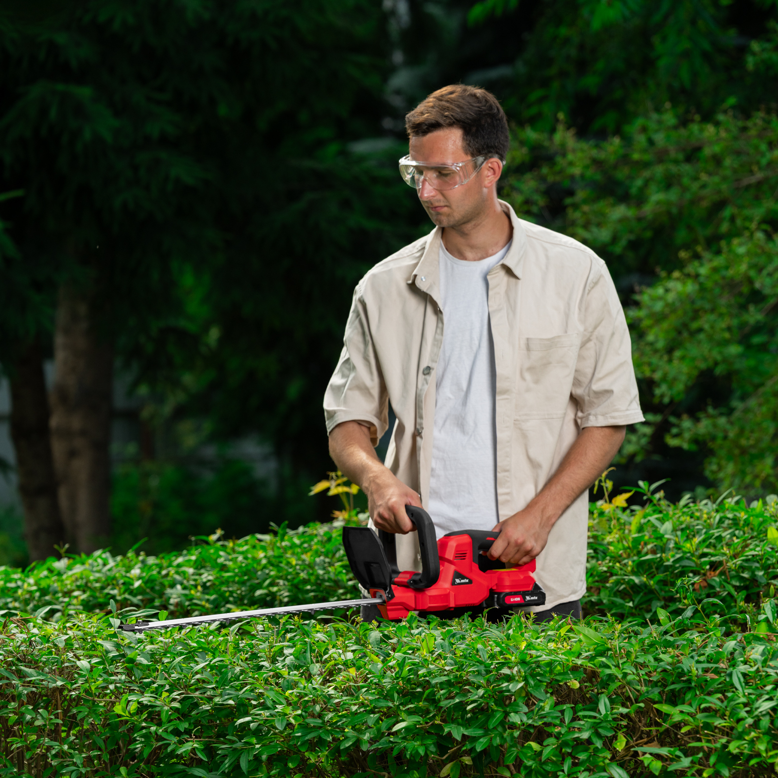 - Продуманное хранение и транспортировка — кусторез поставляется с защитным кожухом для режущего полотна.