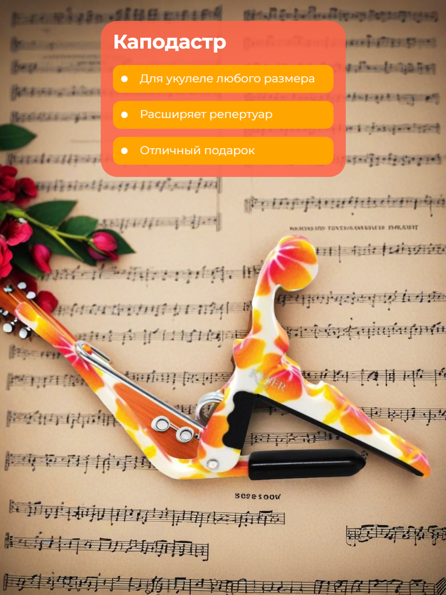 ▸ Каподастр разработан специально для укулеле, также подойдет для банджо и мандолины