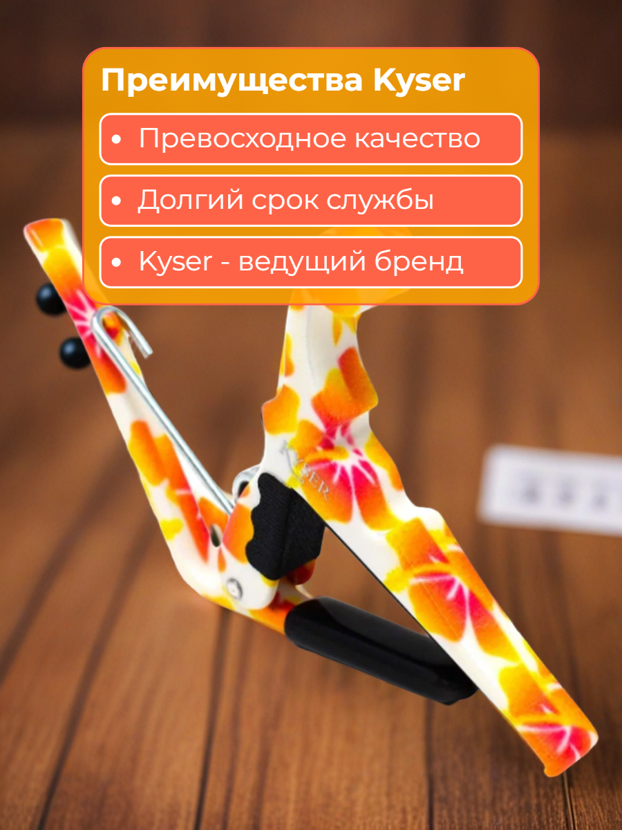 KYSER создали три новых каподастра специально для укулеле, с классичискими гавайскими расцветками - красный гибискус, пастельный гибискус и рисунок, напоминающий традиционную гавайскую гирлянду из цветов (LEI). Эти каподастры KYSER созданы специально для инструментов с маленьким и плоским грифом. Сам каподастр гораздо меньше, без изогнутого радиуса и с меньшим натяжением пружины, чем у оригинального каподастра KYSER , он идеально подходит для укулеле.