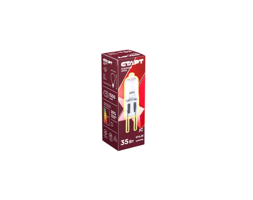 СТАРТ JC 12V 35W G4 -10/1000 Галогенная лампа СТАРТ капсульного типа применяется в декоративных светильниках точечного исполнения, которые используются в интерьерах как основное или дополнительное освещение, зонирующее пространство. Эстетика и удобство использования Лампа капсульного типа имеет компактные размеры и обладает низким уровнем энергопотребления 35 Вт. Устанавливается в светильники с напряжением 12В или в светильники, работающие от сети 220В, имеющие при этом специальный преобразователь. Свет от лампы яркий, насыщенный благодаря прозрачной колбе. При постоянном использовании время работы элемента освещения составляет 1500 часов. Срок службы галогеновых ламп не ограничен. Безопасность Лампы накаливания в процессе работы имеют сильный нагрев, поэтому во избежание ожогов не рекомендуется демонтировать ее сразу после отключения от сети. Данные лампы по окончанию срока эксплуатации не разрешается утилизировать с обычным стеклом. При домашнем хранении галогенные лампы необходимо беречь от детей. Характеристики: Модель: СТАРТ JC 12V 35W G4 Материал корпуса: стекло Рассеиватель: прозрачный Форма колбы: капсула Цоколь: G4 Тип осветителя: галогенная лампа накаливания Мощность: 35Вт Срок службы: 1500 часов Размеры: 32х8