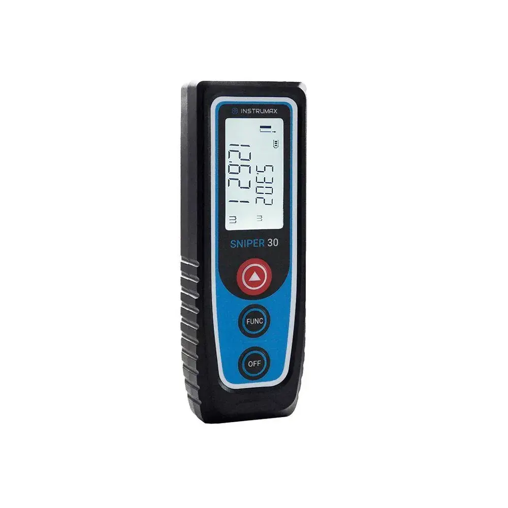 Лазерная рулетка Instrumax SNIPER 30 IM0115 помогает измерять расстояния до 30 м. Управление происходит с помощью всего 3 кнопок. Корпус соответствует стандарту IP54 и защищает рабочие узлы от пыли и влаги. При бездействии прибор автоматически отключается через 180 секунд, что позволяет экономить заряд батареи. Срока их службы хватает на более 5000 измерений. Модель имеет 2 точки начала отсчета - передняя и задняя часть прибора.