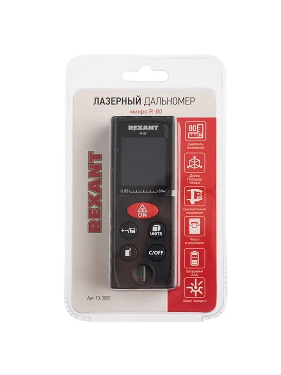 Лазерный дальномер REXANT R-80 — это электронная рулетка, прибор для быстрого бесконтактного определения расстояния до 80 метров.
