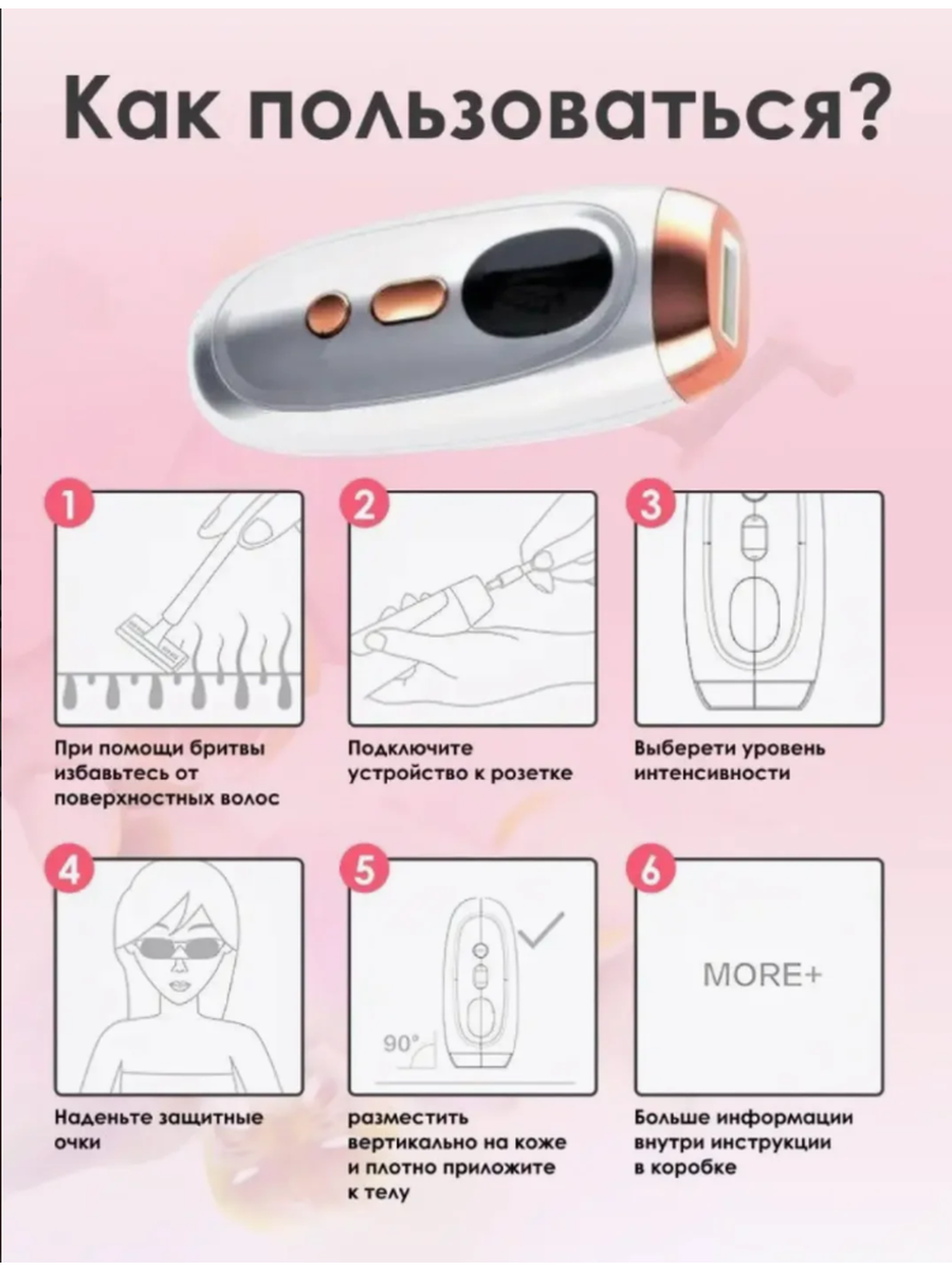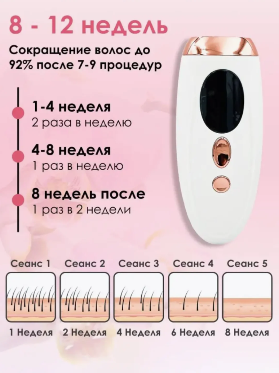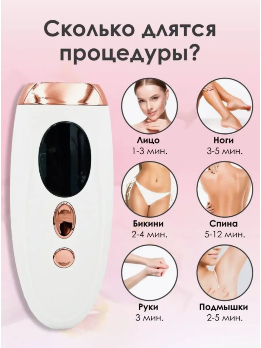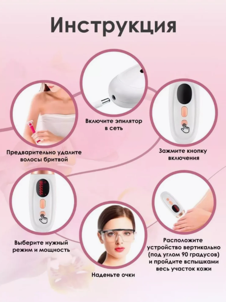 Лазерная эпиляция - самый эффективный и безопасный способ избавления от волос. Уход за телом станет проще благодаря нашему лазерному эпилятору, который гораздо эффективнее обычных депиляторов! Женский лазерный фотоэпилятор используется для депиляции в домашних условиях. Это устройство избавит от нежелательных волосков в области бикини, подмышек, лица, ног и рук. Эпилятор для домашнего использования заменит салонные процедуры, безболезненно избавит от нежелательных волос и подарит гладкость вашей коже. Принцип действия лазерного электрического эпилятора основан на точном и мощном проникающем световом излучении, которое, накапливаясь в пигменте волос, разрушает корень и луковицы. Таким образом, лазер предотвращает рост новых волос. Никакого вреда для кожи. Для идеального результата требуется несколько сеансов лазерной эпиляции. Первые результаты эпиляции заметны после 2-3 процедур. Желаемый эффект после 6 процедур. Процедуры рекомендуется проводить раз в 1-2 недели. Аппарат для удаления волос имеет эргономичный дизайн, прост в использовании. Эпилятор выполнен в корпусе из АБС пластика, отличается компактными размерами, удобно лежит в руке. Благодаря своей компактности и мобильности, он всегда будет у Вас под рукой, где бы Вы не находились. Не требует применения пены, крема, воска, геля и других средств для удаления волос перед процедурой. Набор с фотоэпилятором - отличный подарок, наряду с косметикой или другими незаменимыми вещами, жене, любимой, девушке, подруге на день рождения, новый год или другой праздник. Компактный лазерный фото эпилятор подходит как для женщин так и для мужчин - 990 000 вспышек. В комплекте с элос эпилятором идут станок для бритья (бритва) и очки для лазерной эпиляции, использование которых обязательно!