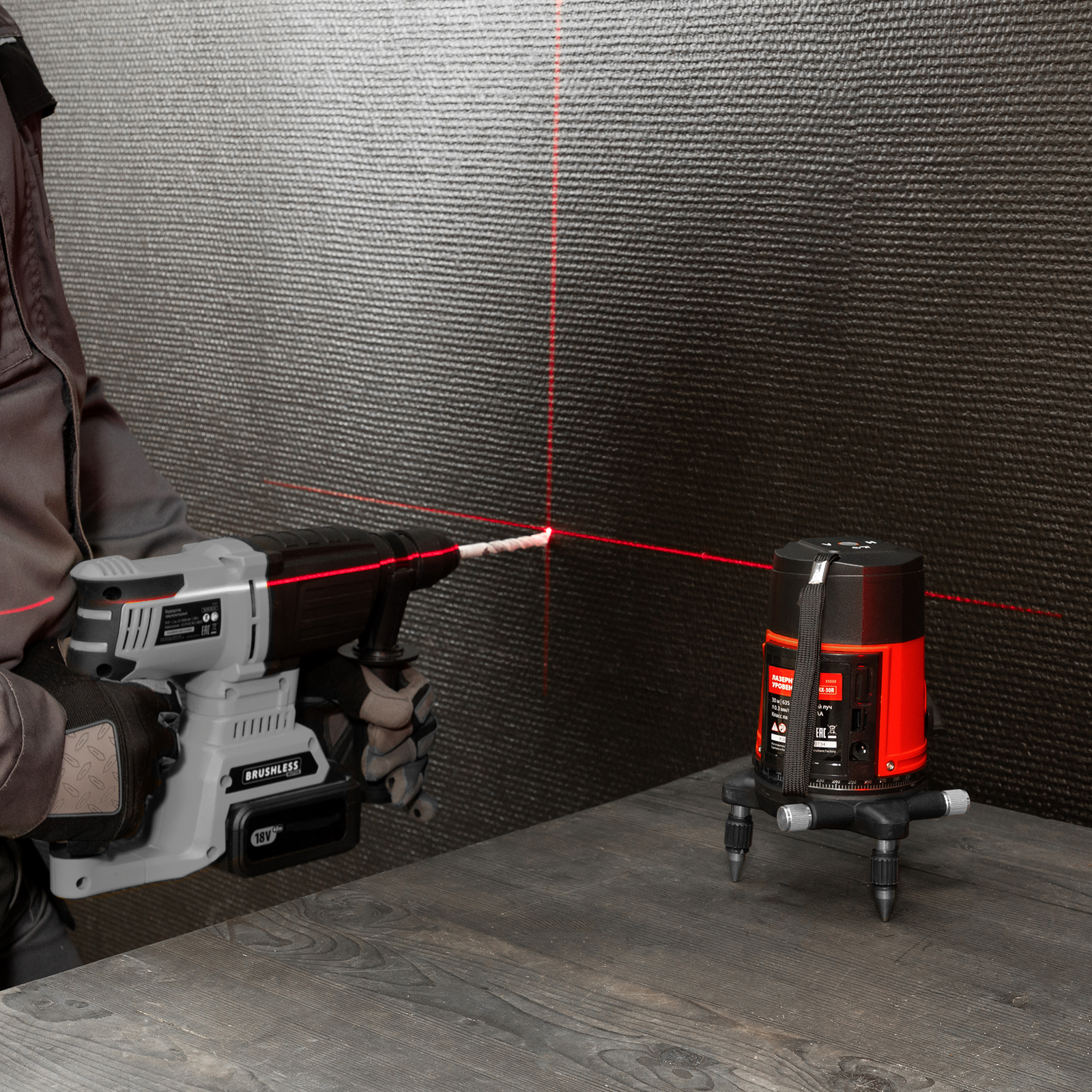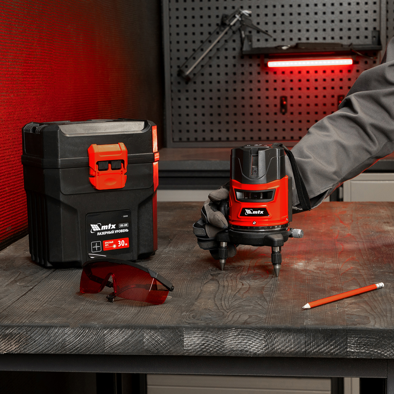 - Широкая комплектация — инструмент поставляется в удобном кейсе, с очками для распознавания лучей на большом расстоянии и при ярком освещении.