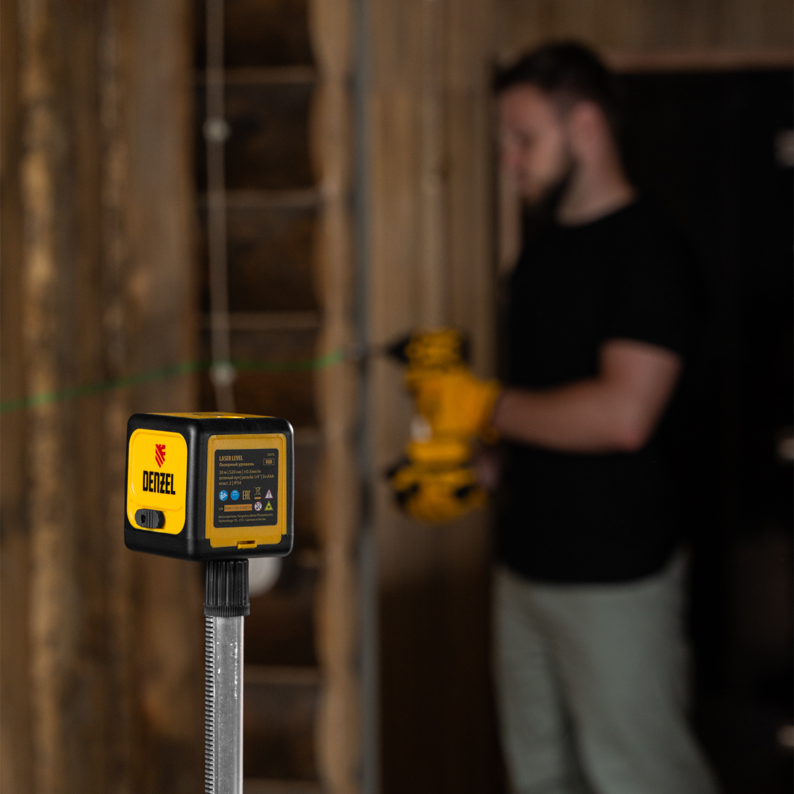 Лазерный уровень DQB, 30 м, зеленый луч, батарейки, сумка Denzel