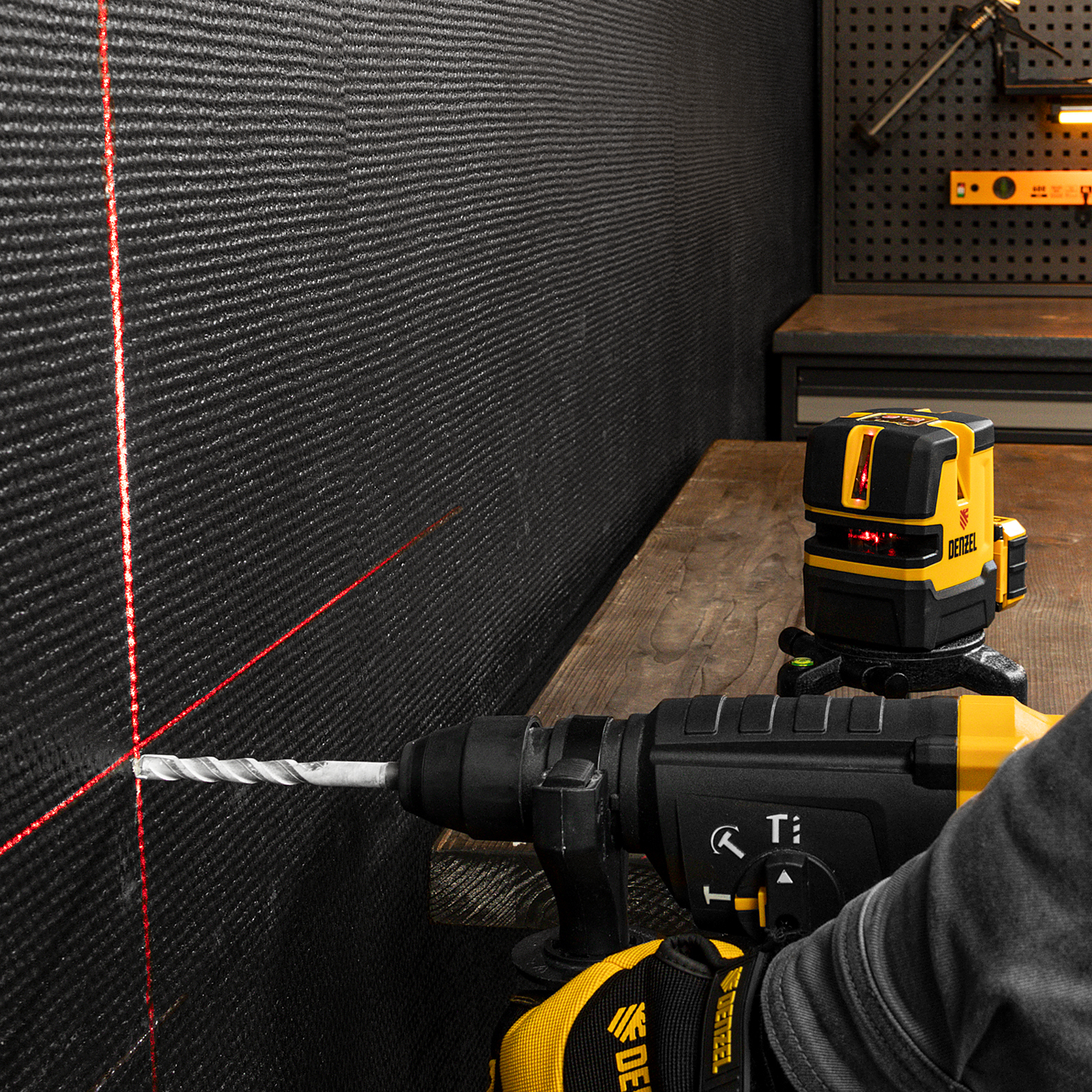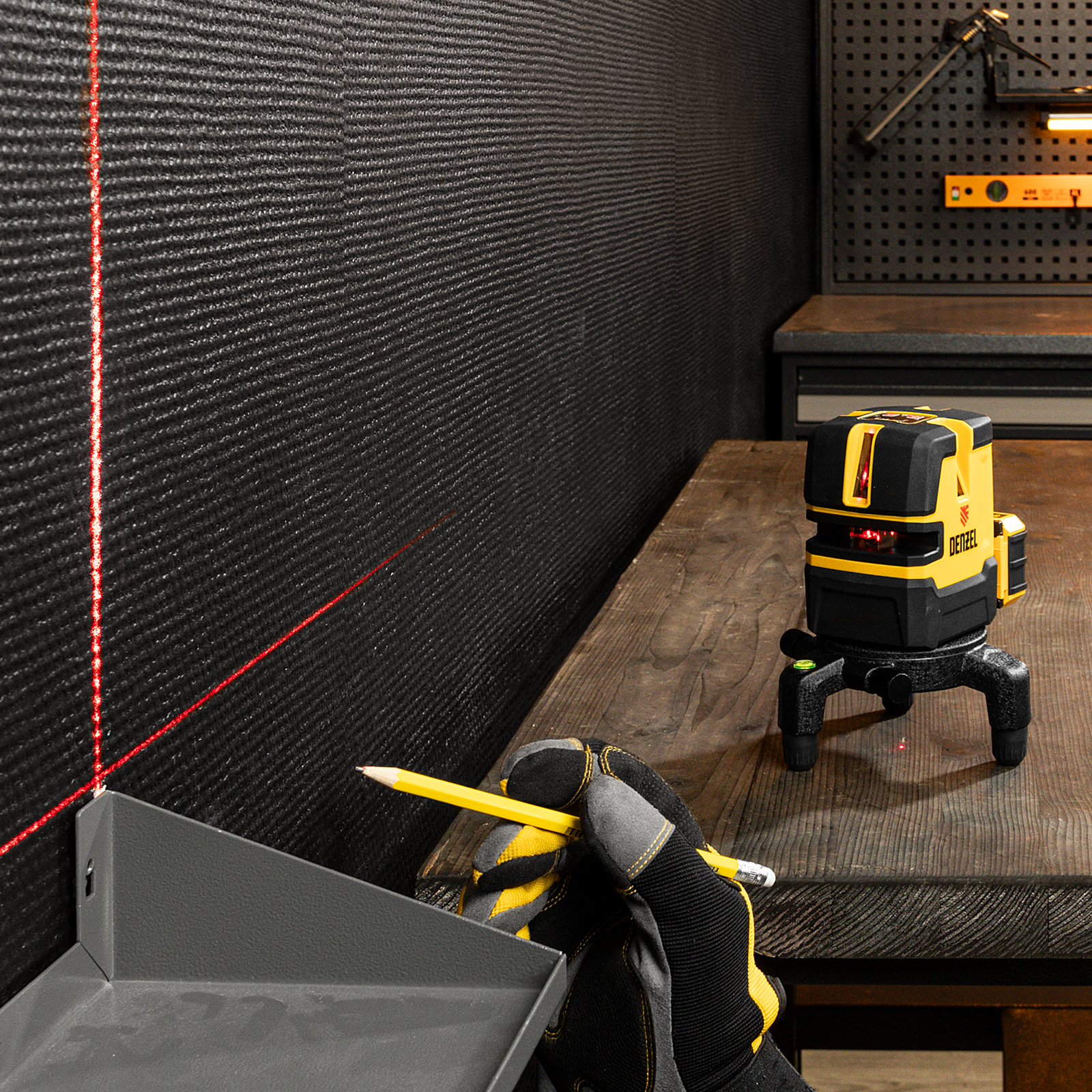 - Легкое наведение луча — благодаря поворотному основанию удобно создавать лазерную плоскость.