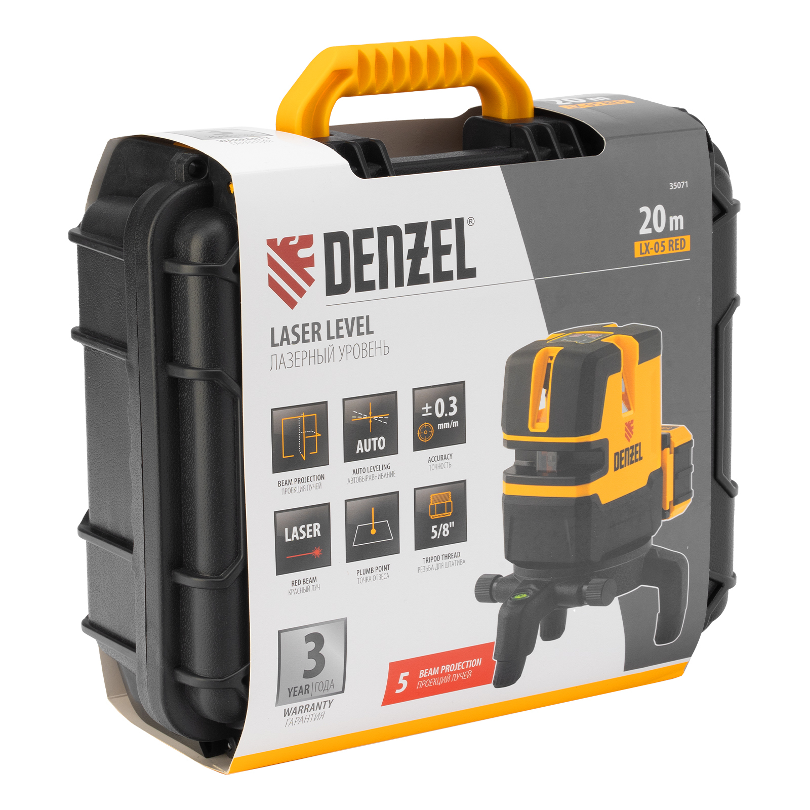 Лазерный уровень Denzel LX 05 Red 35071 предназначен для построения линий разметки на стенах, полу и потолке при проведении строительно-ремонтных работ. Благодаря длине волны лазера 635 Нм дальность проецирования уровня составляет 20 м. Уровень проецирует на поверхности точку отвеса, 4 вертикальных и 1 горизонтальную линию. Функция автоматического выравнивания имеет высокую точность ±0,3мм/м. Угол развертки прибора составляет 240 градусов.