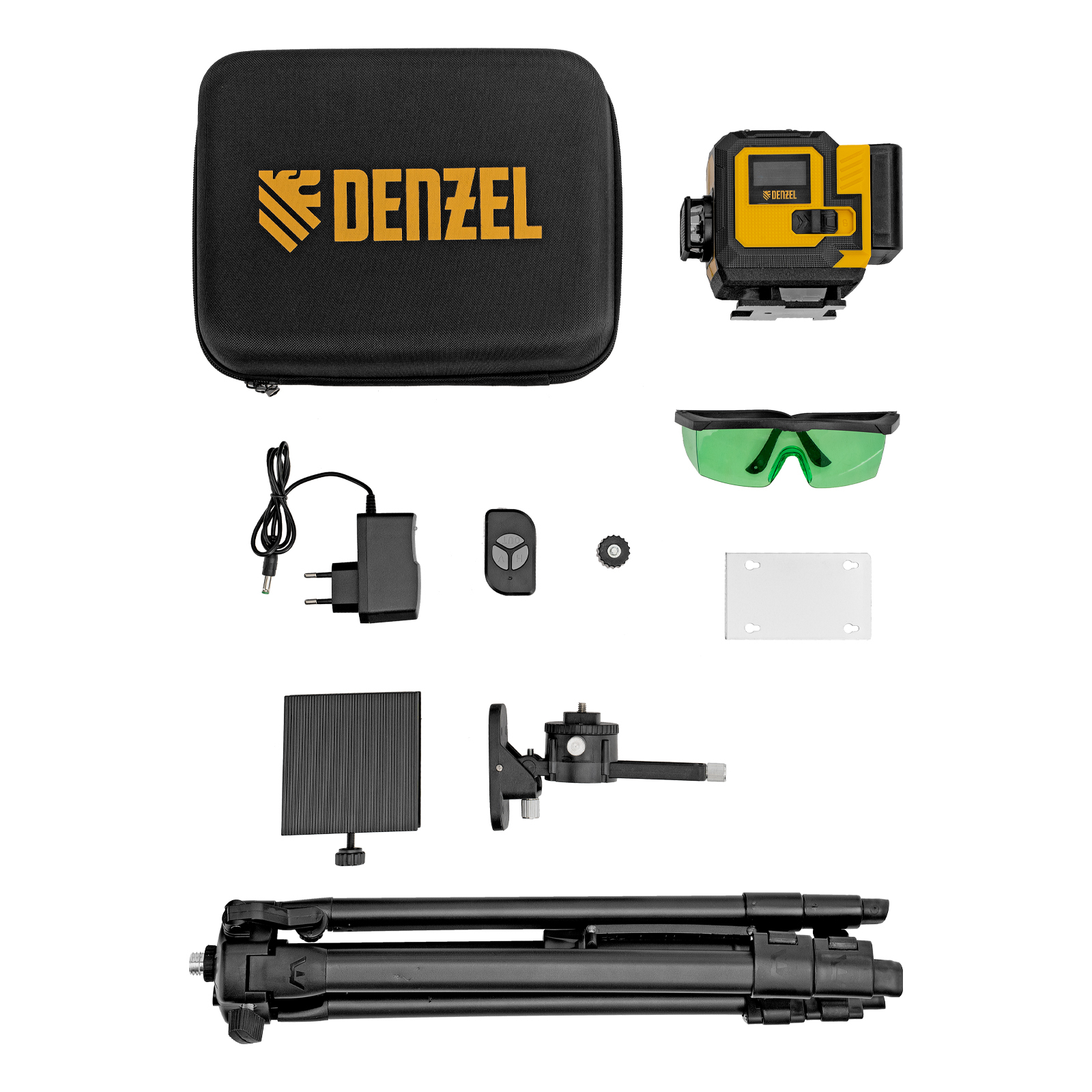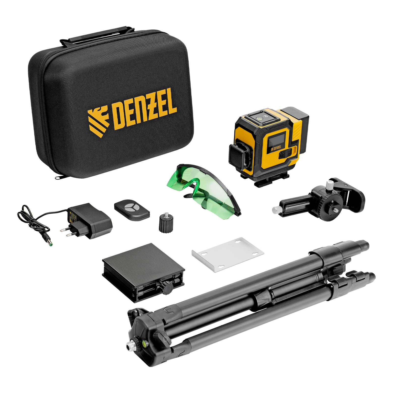 Мультипризменный лазерный уровень Denzel DLV-360-3T 350805 поставляется со штативом, работает от аккумулятора Li-Ion емкостью 2,4 А·ч и проецирует горизонтальную и 2 вертикальные линии на расстояние до 30 м при помощи зеленых лучей длиной 520 нм. С его помощью можно нанести разметку и выровнять предметы относительно друг друга и земли с точностью до 0,3 мм/м. Угол развертки составляет 360°, что повышает удобство и эффективность работы. Прибор незаменим во время проведения строительных, ремонтных, отделочных работ, обустройства интерьера.