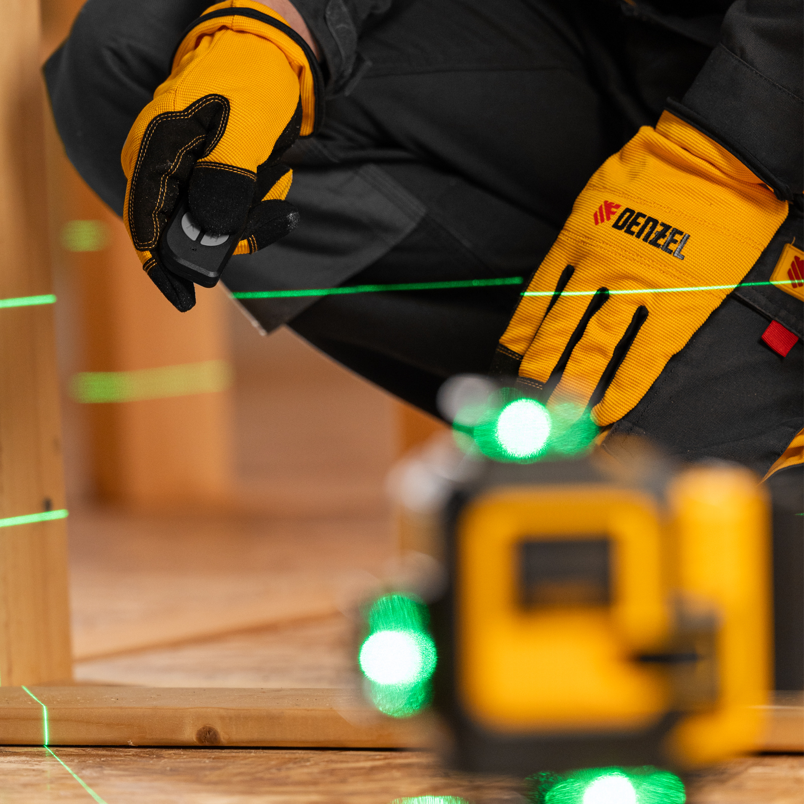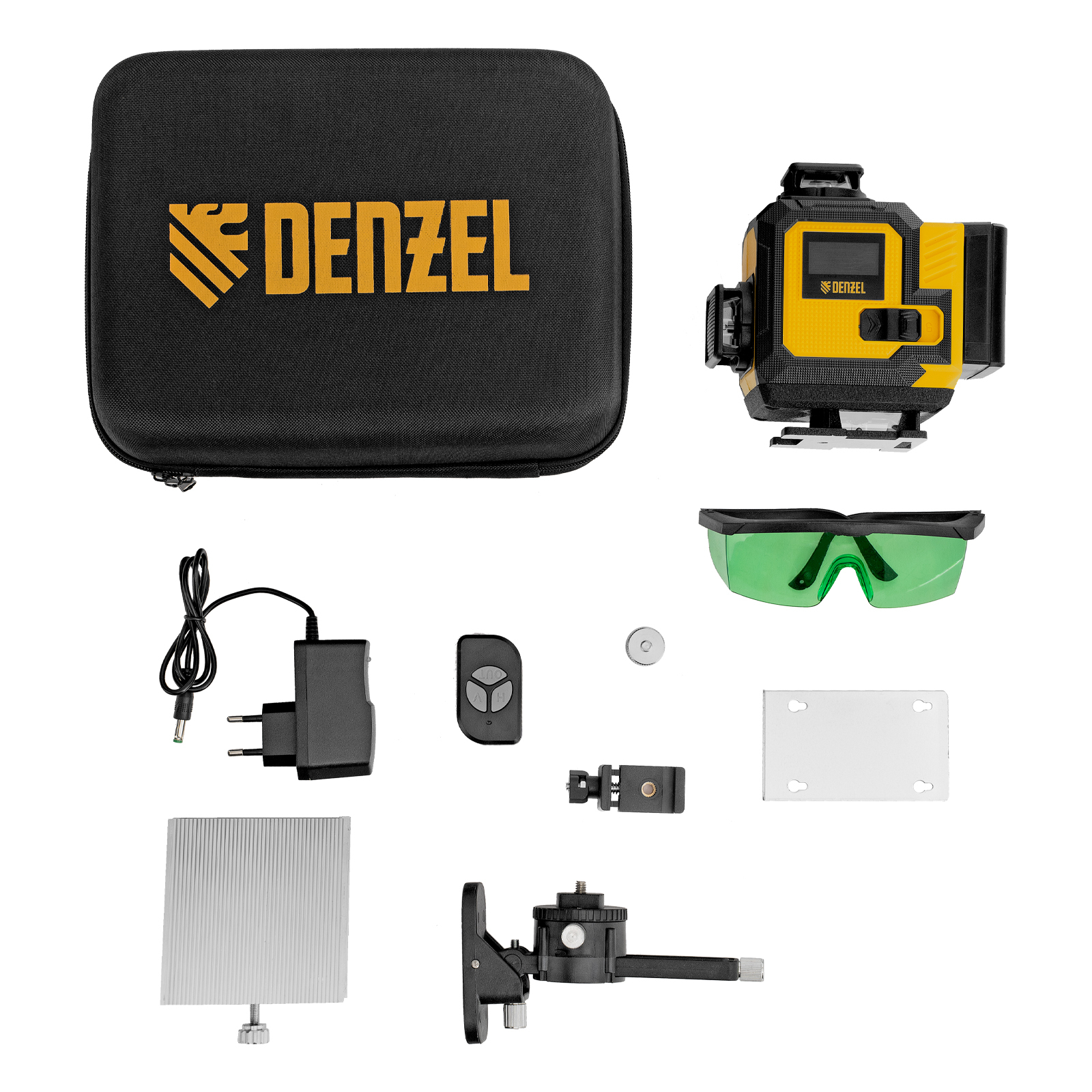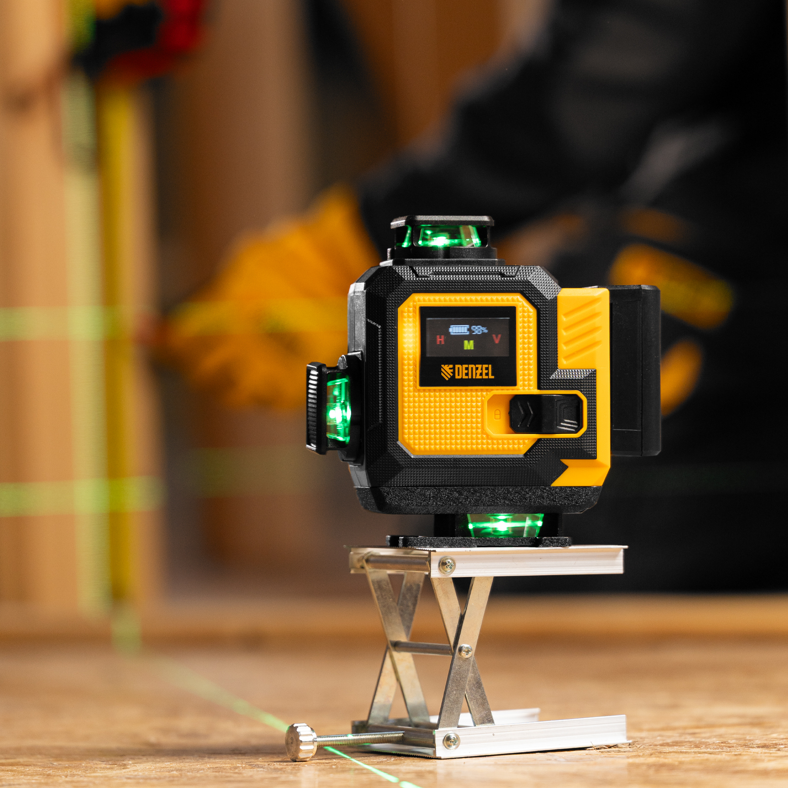 Мультипризменный лазерный уровень Denzel DLV-360-4C 35081 поставляется в кейсе, работает от аккумулятора Li-Ion емкостью 2,4 А·ч и проецирует 2 горизонтальные и 2 вертикальные линии на расстояние до 30 м при помощи зеленых лучей длиной 520 нм. С его помощью можно нанести разметку и выровнять предметы относительно друг друга и земли с точностью до 0,3 мм/м. Угол развертки составляет 360°, что повышает удобство и эффективность работы. Прибор незаменим во время проведения строительных, ремонтных, отделочных работ, обустройства интерьера.