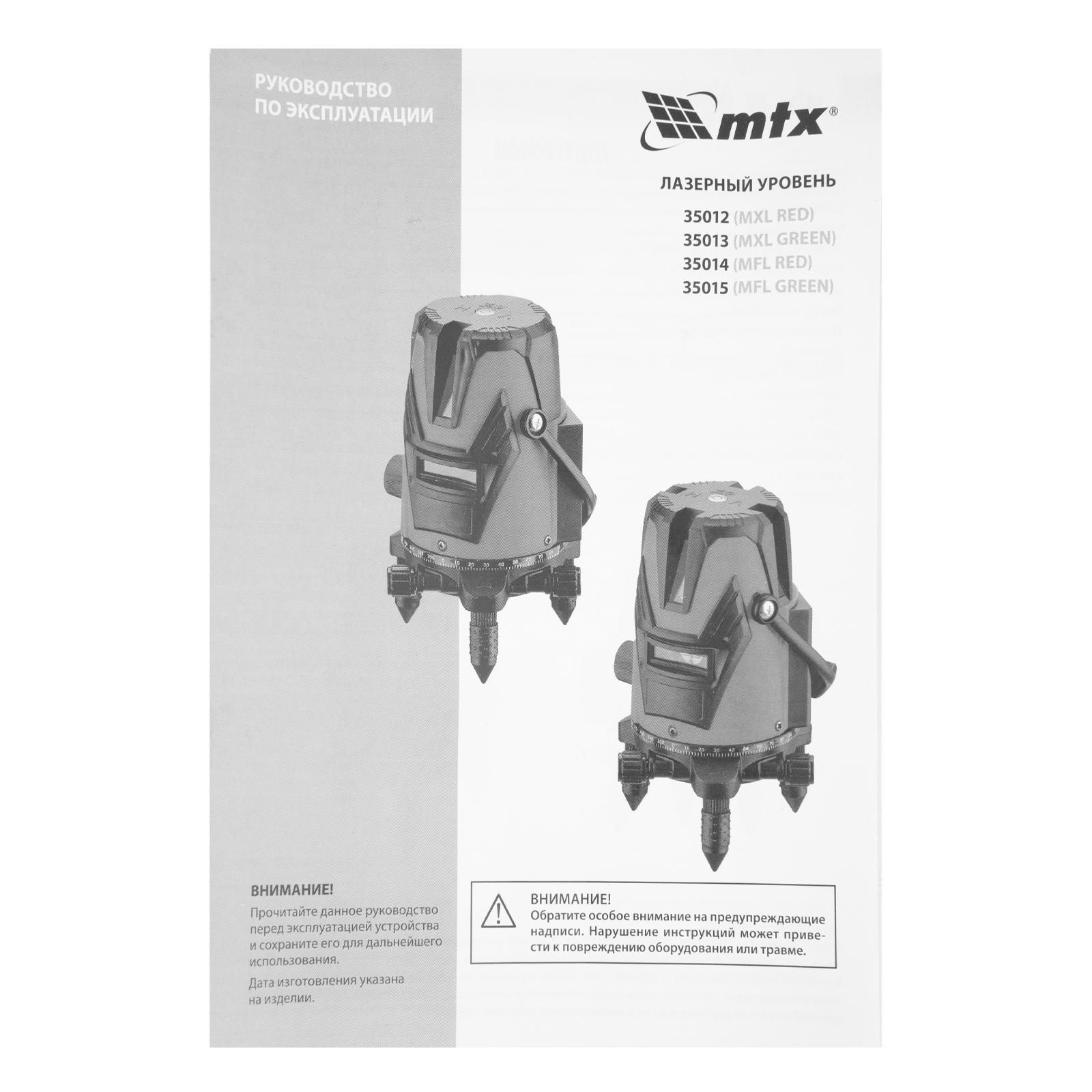 Лазерный уровень MXL GREEN, 30 м, зеленый луч, акк. Li 2400 mAh, сумка, резьба 5/8" MTX