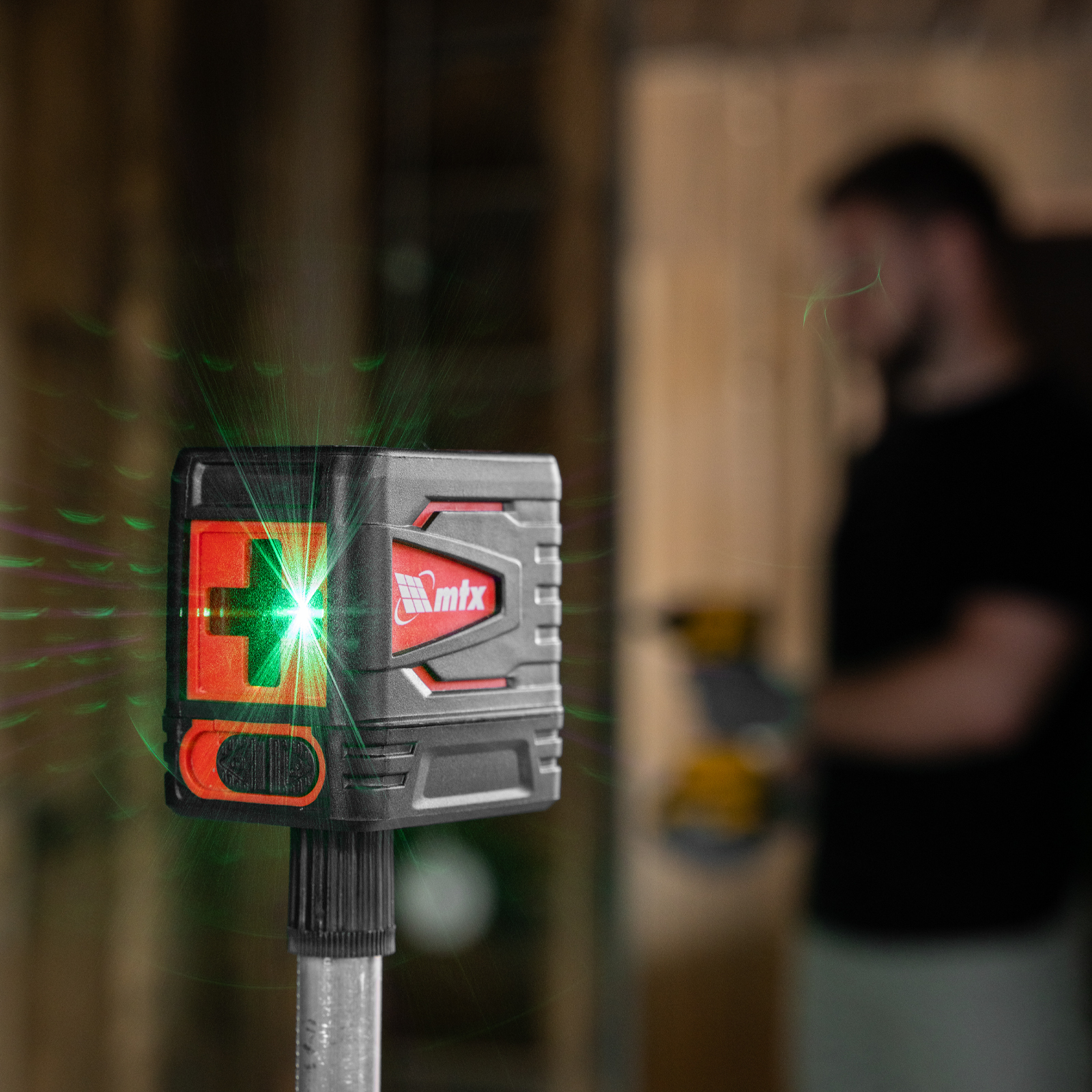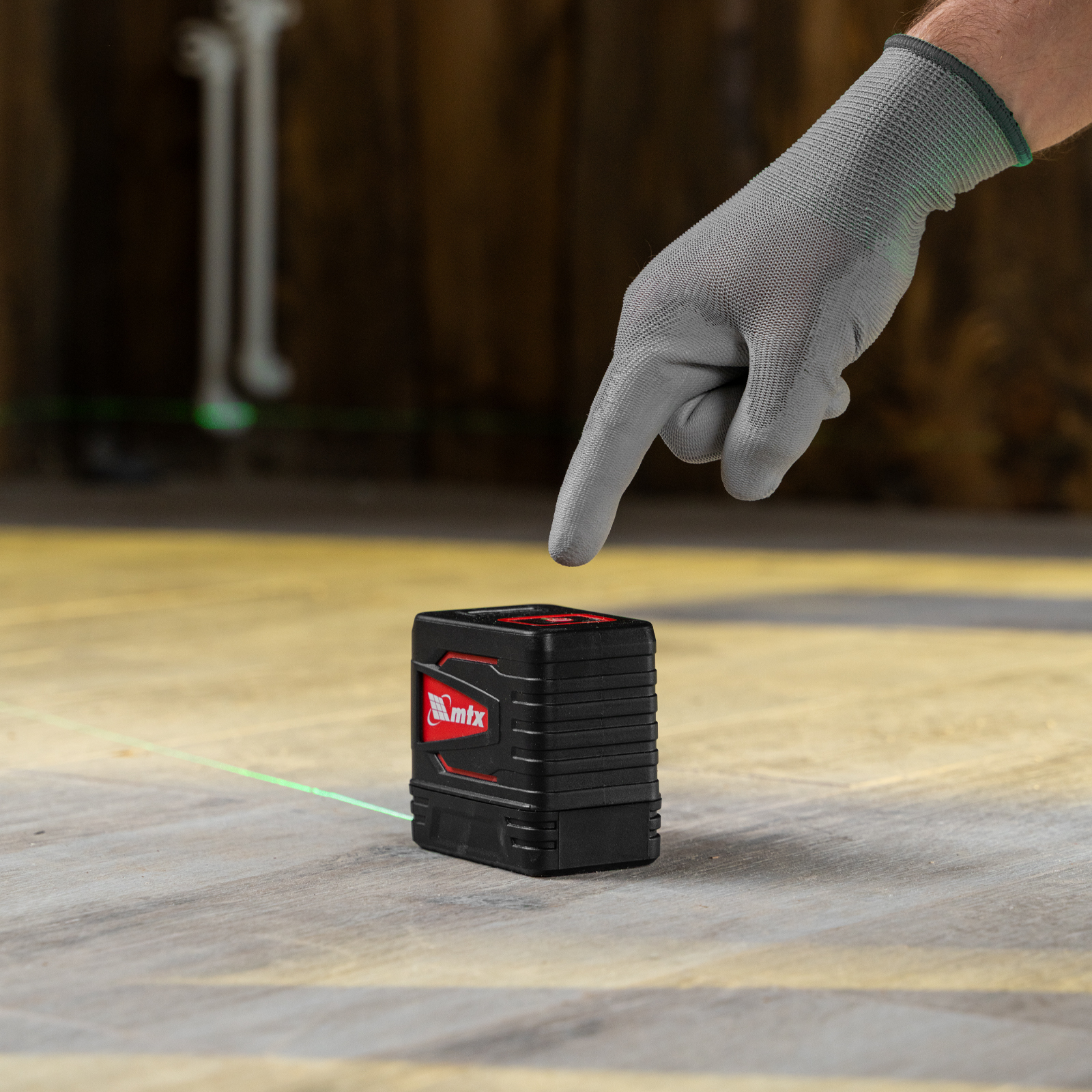 Лазерный уровень MTX QBC GREEN Basic SET 35011 с резьбой 1/4″ работает от батареек AA и проецирует горизонтальную и вертикальную линии на расстояние до 20 м при помощи зеленых лучей длиной 520 нм. Предназначен для проведения разметки поверхностей и выравнивания предметов при проведении строительных и ремонтных работ. С его помощью можно выполнить внутреннюю отделку помещений, смонтировать подвесные потолки, установить розетки и выключатели, шкафы и стеллажи, повесить полки и картины и т.д. Погрешность составляет ±0,3 мм/м, что обеспечивает высокую точность разметки. Прибор можно использовать не только в помещении, но и на улице — зеленый луч хорошо виден даже под открытым небом.