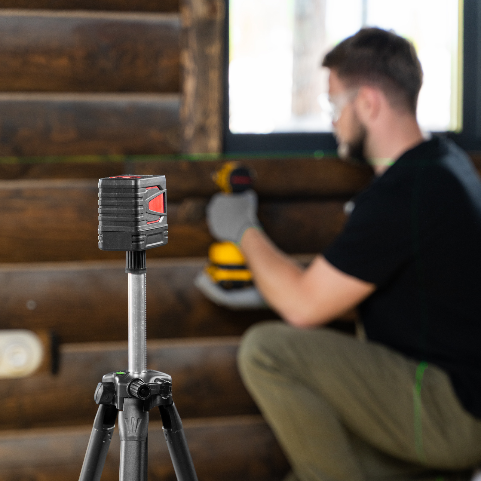 - Самовыравнивание — прибор автоматически компенсирует неровности в пределах ±4°, при выходе за пределы данного диапазона лазерные лучи будут мигать.