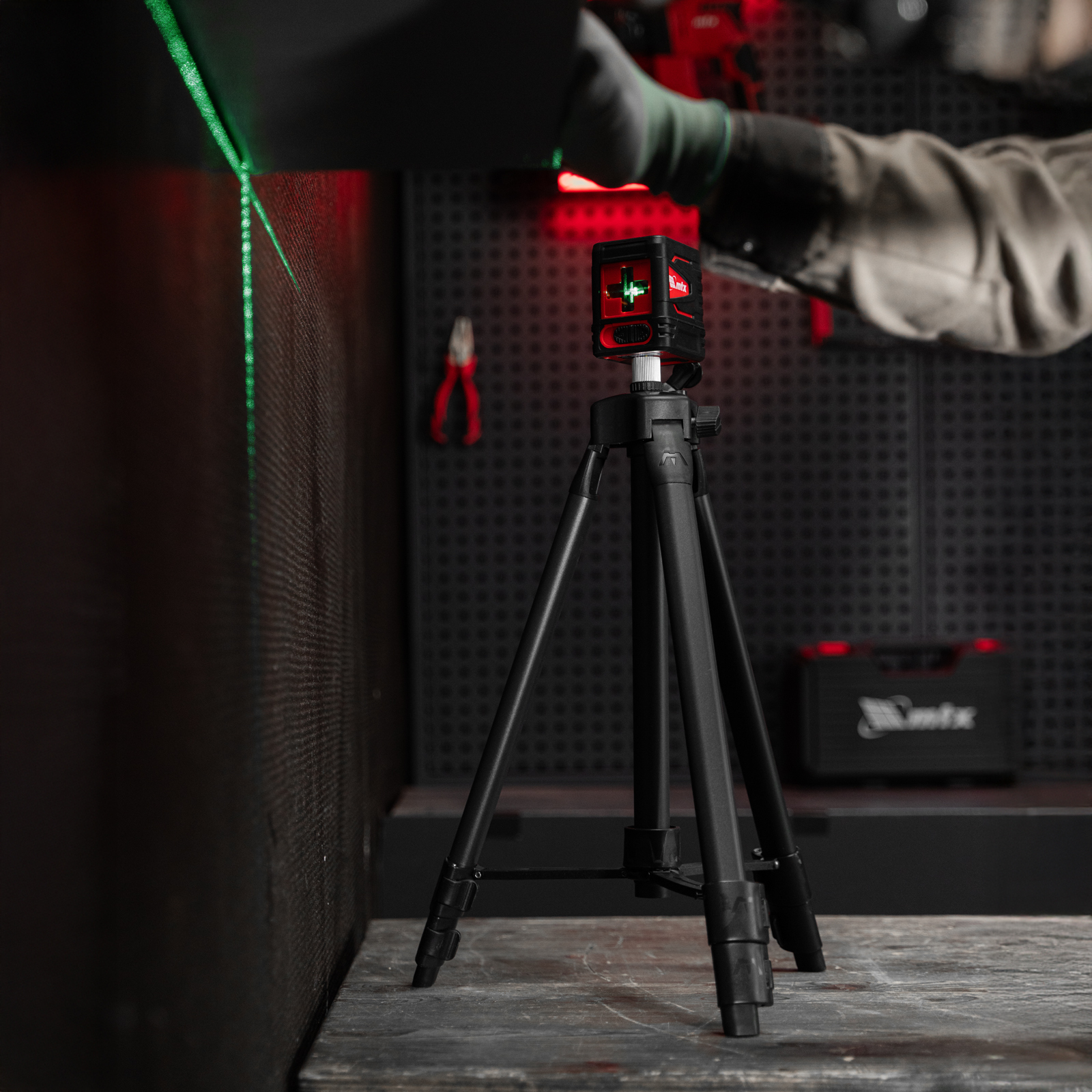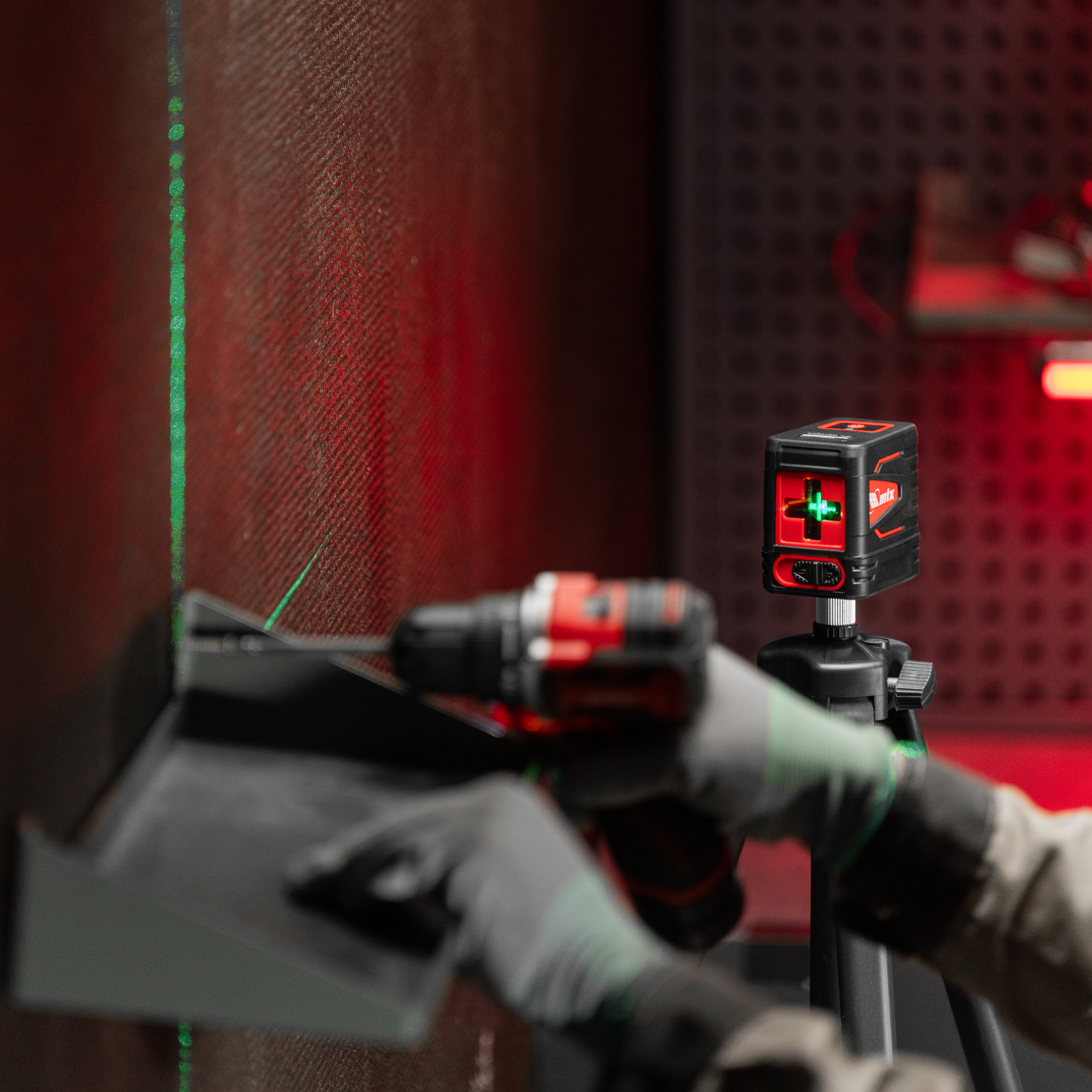 Лазерный уровень MTX QBC GREEN Pro SET 350115 поставляется со штативом, работает от батареек AA и проецирует горизонтальную и вертикальную линии на расстояние до 20 м при помощи зеленых лучей длиной 520 нм. Предназначен для проведения разметки поверхностей и выравнивания предметов при проведении строительных и ремонтных работ. С его помощью можно выполнить внутреннюю отделку помещений, смонтировать подвесные потолки, установить розетки и выключатели, шкафы и стеллажи, повесить полки и картины и т.д. Погрешность составляет ±0,3 мм/м, что обеспечивает высокую точность разметки. Прибор можно использовать не только в помещении, но и на улице — зеленый луч хорошо виден даже под открытым небом.