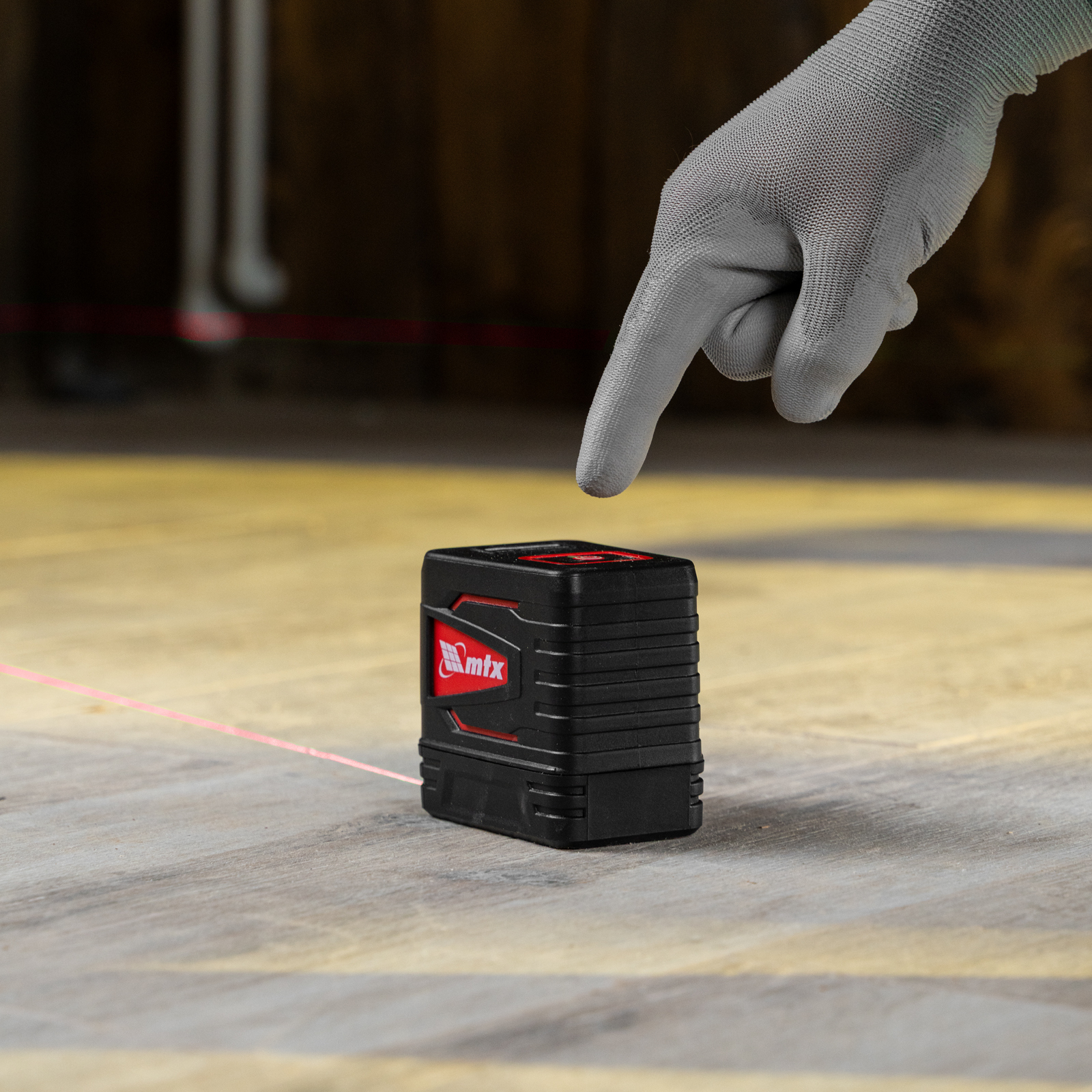 Лазерный уровень MTX QBC RED Basic SET 35010 с резьбой 1/4″ работает от батареек AA и проецирует горизонтальную и вертикальную линии на расстояние до 10 м при помощи красных лучей длиной 635 нм. Предназначен для проведения разметки поверхностей и выравнивания предметов при проведении строительных и ремонтных работ. С его помощью можно выполнить внутреннюю отделку помещений, смонтировать подвесные потолки, установить розетки и выключатели, шкафы и стеллажи, повесить полки и картины и т.д. Погрешность составляет ±0,3 мм/м, что обеспечивает высокую точность разметки. Прибор можно использовать в помещении и на улице.