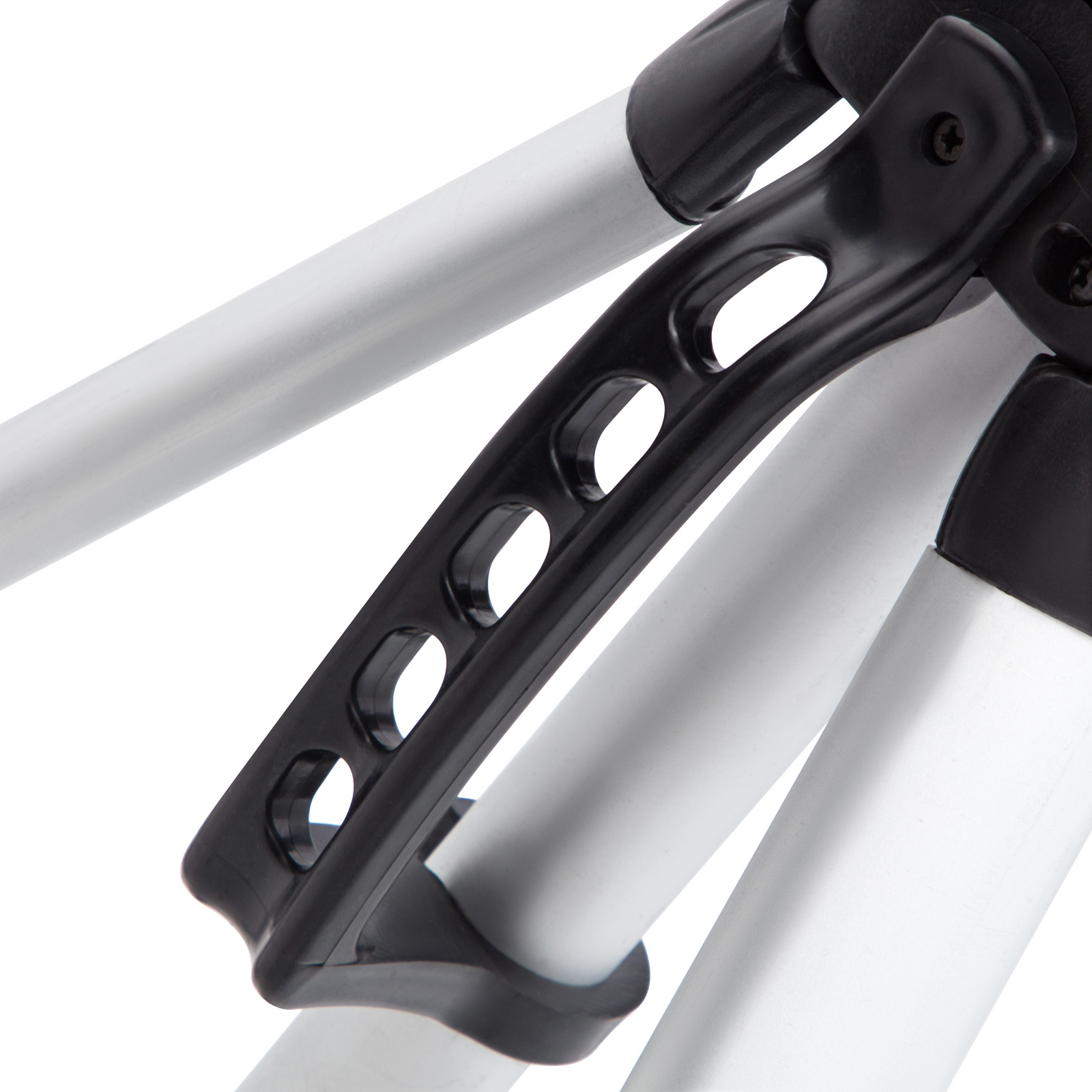 - Устойчивость — алюминиевый штатив с выдвижными ножками обеспечивает надежную фиксацию уровня на высоте до 110 см.
