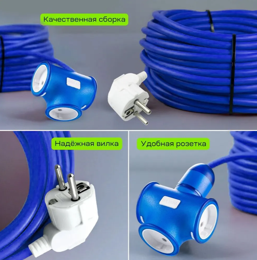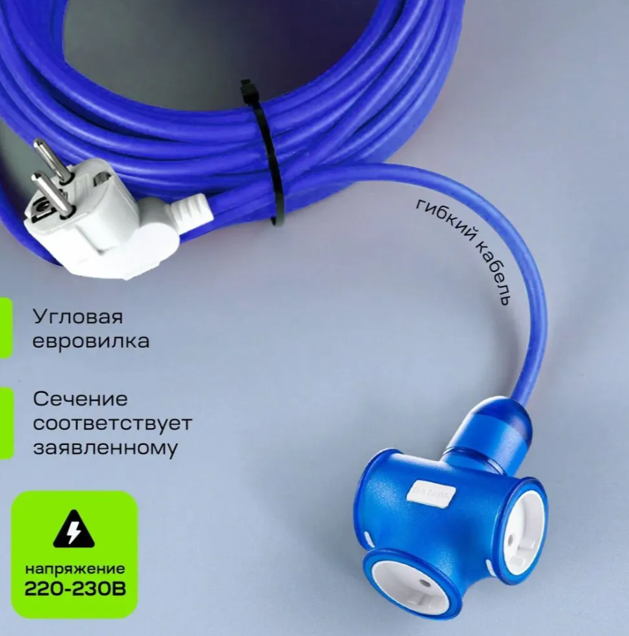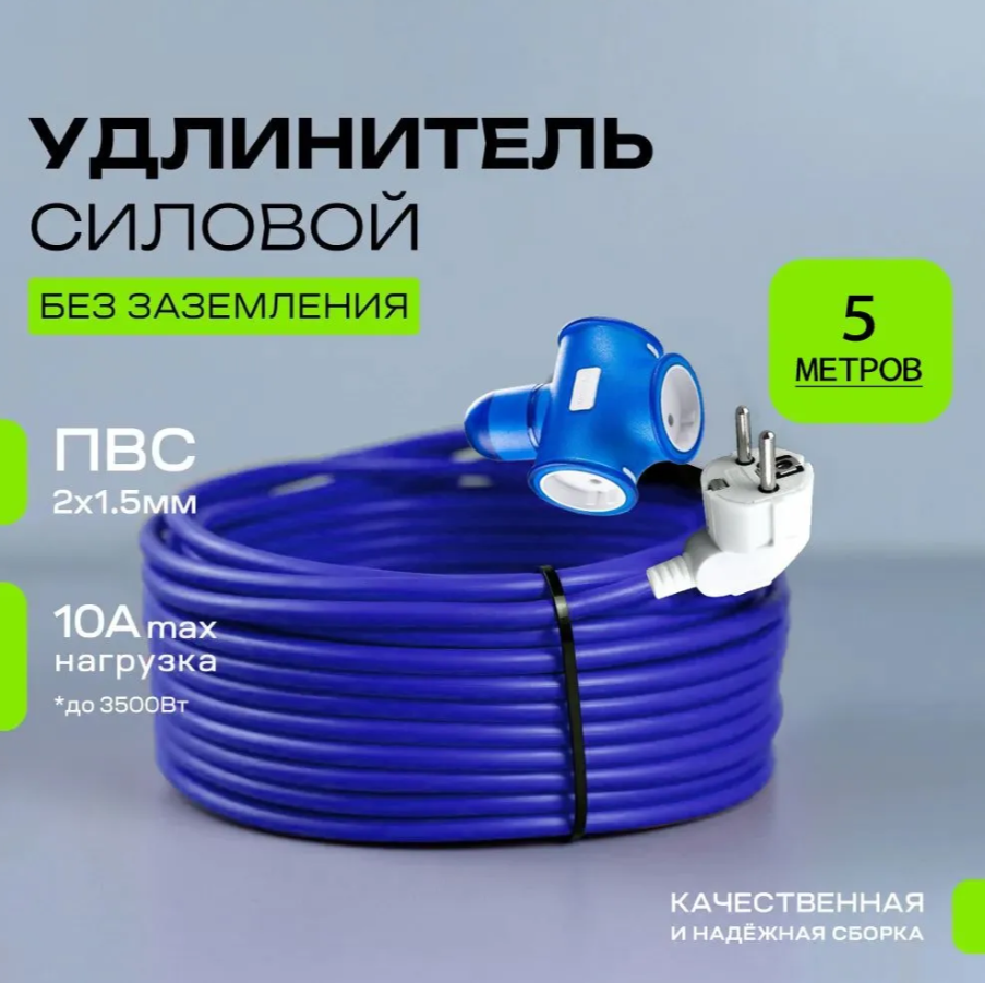 Удлинитель Legelans оснащен тремя розетками, что позволяет одновременно подключать несколько устройств. Длина кабеля питания составляет 5 метров, что обеспечивает достаточное расстояние между устройствами и источником питания.