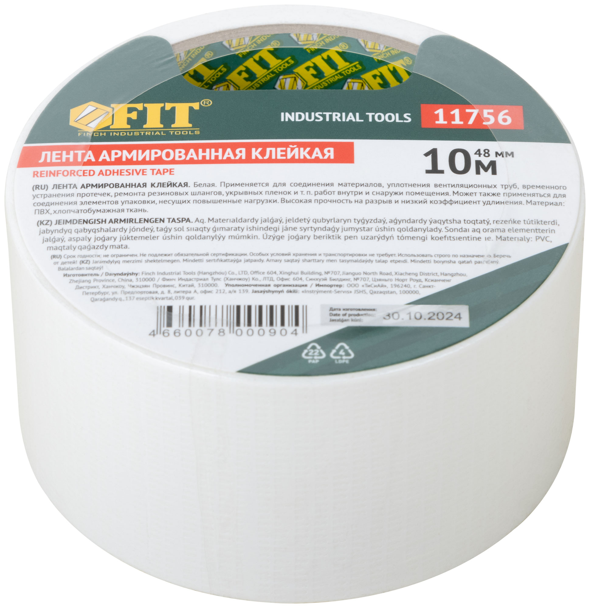 Универсальная клейкая лента FIT, армированная хлопчатобумажной тканью, предназначена для уплотнения вентиляционных труб, ремонта различных поверхностей, резиновых шлангов, укрывных пленок. Также используется для соединения элементов упаковки, несущих повышенные нагрузки. Обладает высокой прочностью на разрыв и низким коэффициентом удлинения.