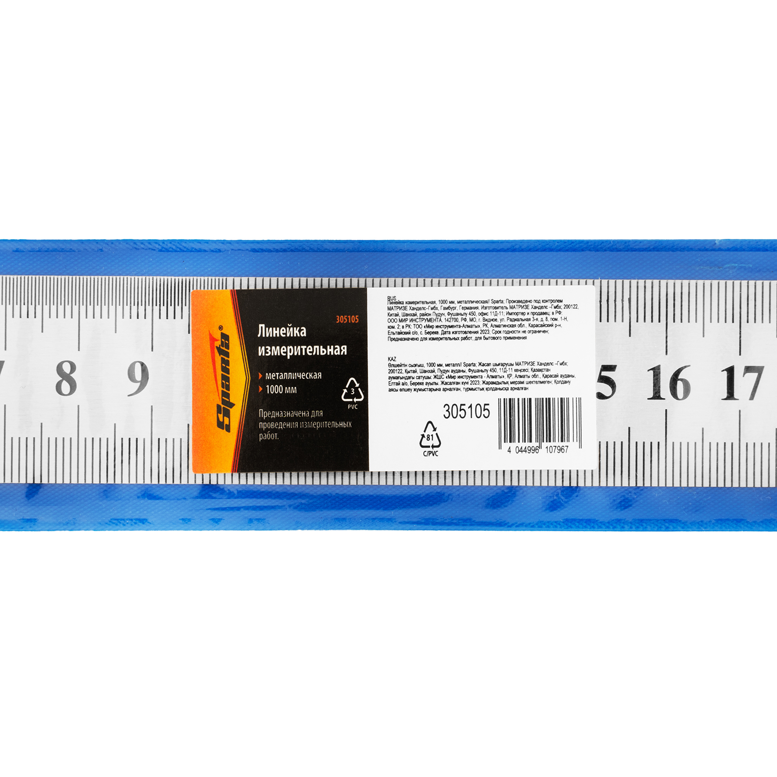 Металлическая измерительная линейка Sparta 305105 с пределом измерения 1000 мм предназначена для определения размеров деталей, разметки поверхностей и начертания прямых линий. Используется преимущественно во время строительства и ремонта, проектирования, занятий творчеством, в металлообработке, будет полезна дома и в гараже.