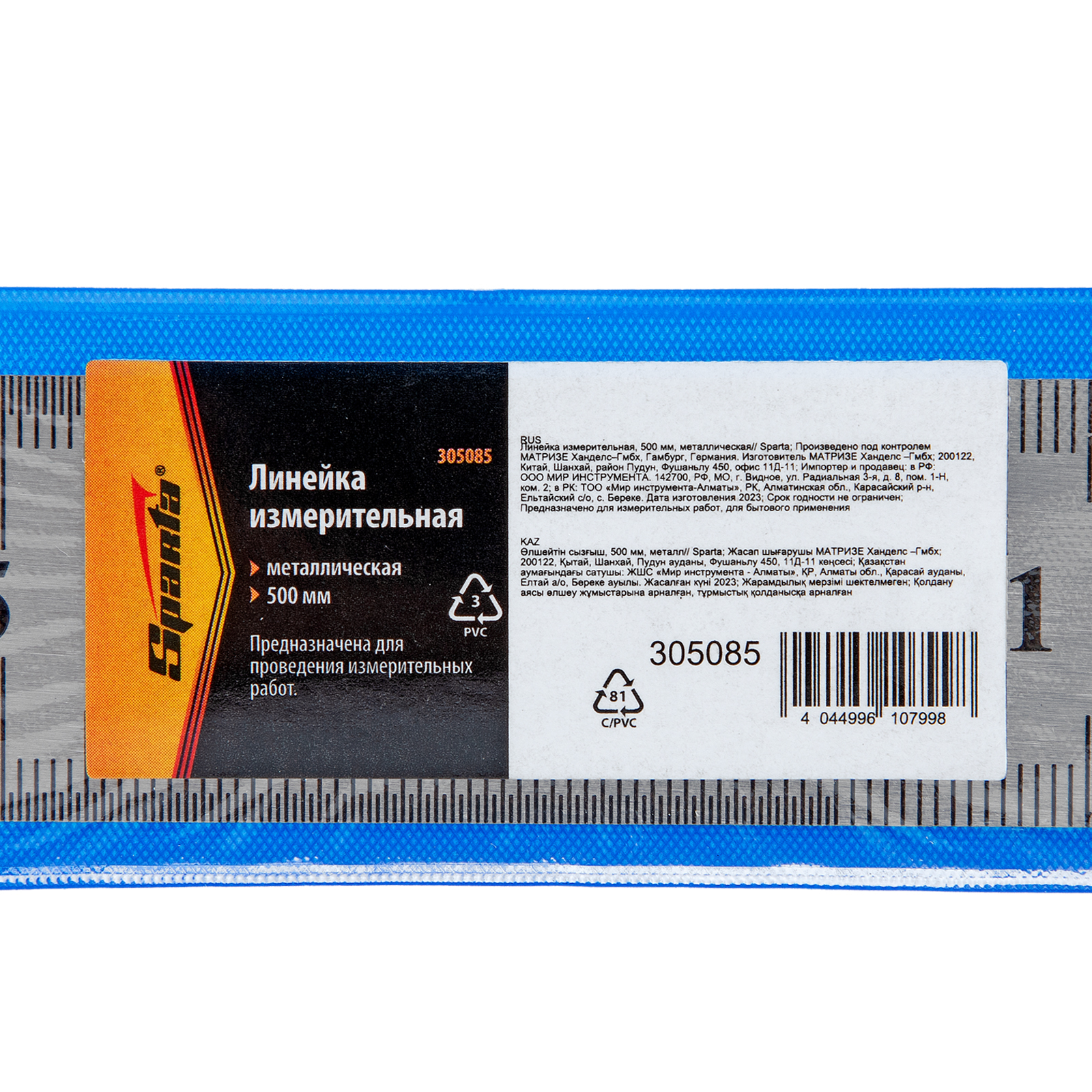 Металлическая измерительная линейка Sparta 305085 с пределом измерения 500 мм предназначена для определения размеров деталей, разметки поверхностей и начертания прямых линий. Используется преимущественно во время строительства и ремонта, проектирования, занятий творчеством, в металлообработке, будет полезна дома и в гараже.