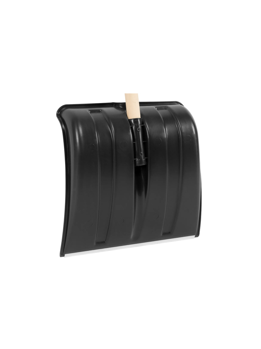Ковш лопаты изготовлен из прочного и легкого материала - алюминия и полипропилена. Это обеспечивает долговечность и надежность инструмента, а также позволяет легко справляться с большими объемами снега.