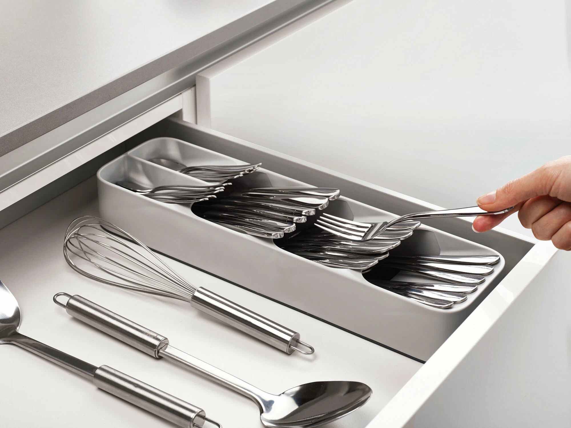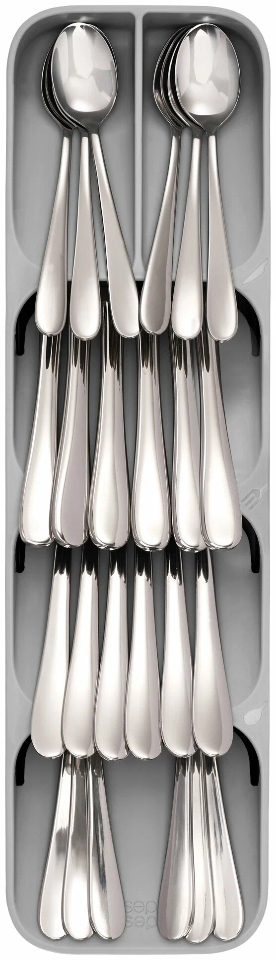 Лоток-органайзер для столовых приборов Cutlery Organizer – уникальный лоток с инновационным дизайном, позволяет в полной мере использовать пространство ящика и хранить больше вещей в нем. Хранение столовых приборов в нем делает Ваш ящик более аккуратным, это так же удобно для Вас, чтобы быстро найти конкретные столовые приборы. Лоток-органайзер для столовых приборов Cutlery Organizer легко моется, безвреден и безопасен в использовании. Преимущества: - инновационный дизайн; - гораздо более удобное хранение; - обеспечивает больше пространства; - простой и практичный; - противоскользящее основание; - экологически чистый; - легко мыть и быстро сохнет.