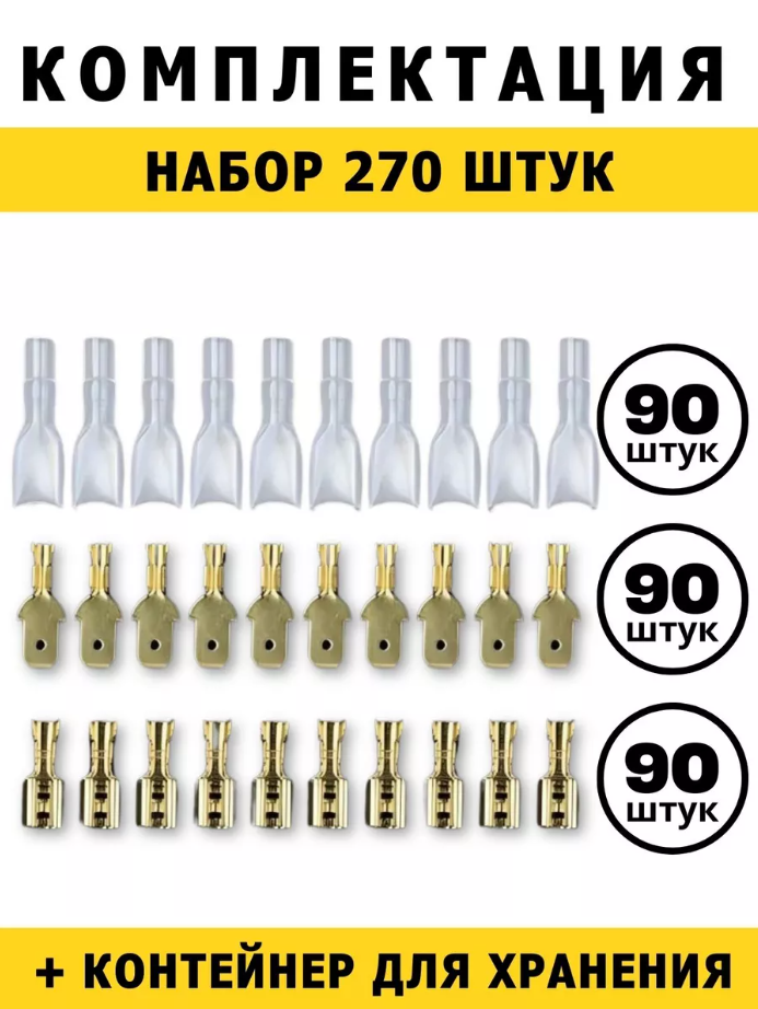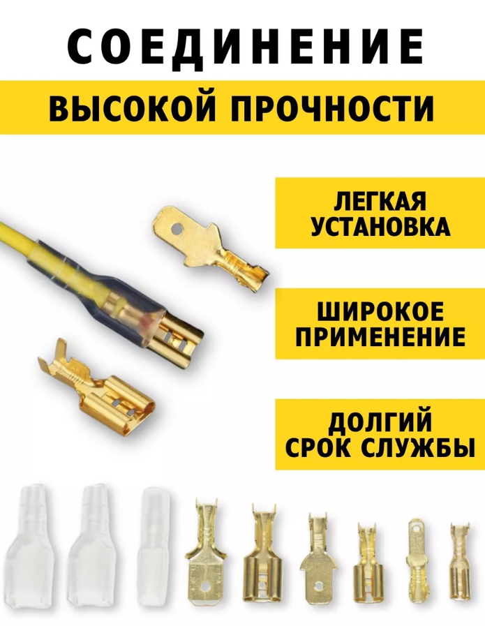 6.3 мм мама -30 шт папа - 30 шт изоляция ПВХ - 30 шт; 4.8 мм мама -30 шт папа - 30 шт изоляция ПВХ - 30 шт; 2.8 мм мама -30 шт папа - 30 шт изоляция ПВХ - 30 шт